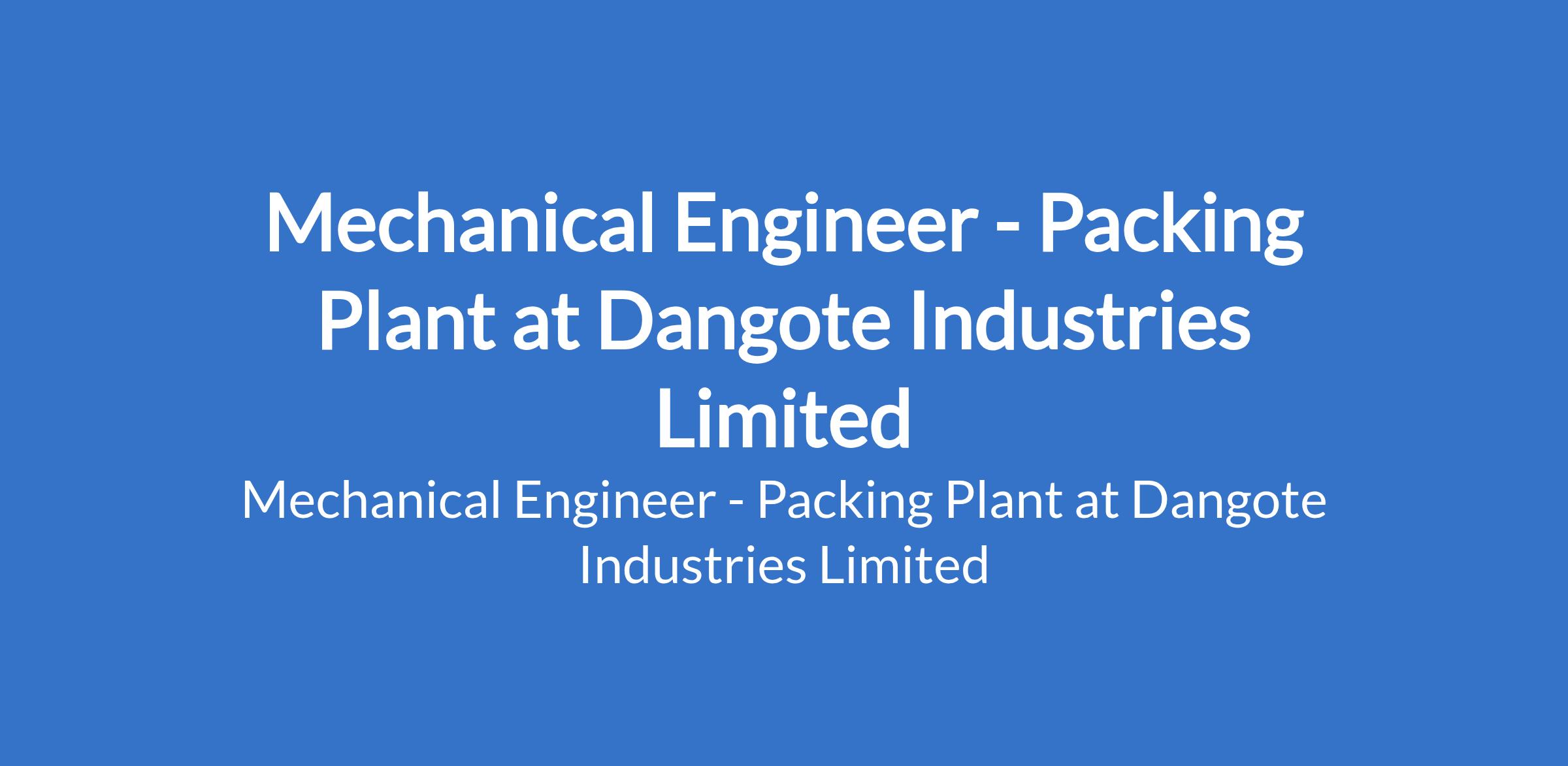 Dangote Industries Limited is recruiting to fill the position of: Mechanical Engineer - Packing Plant. The position is located in Ibese Plant, Ogun State. Interested candidates should possess a BSc / HND qualification in Mechanical Engineering or its equivalent 2 - 9 years experience.