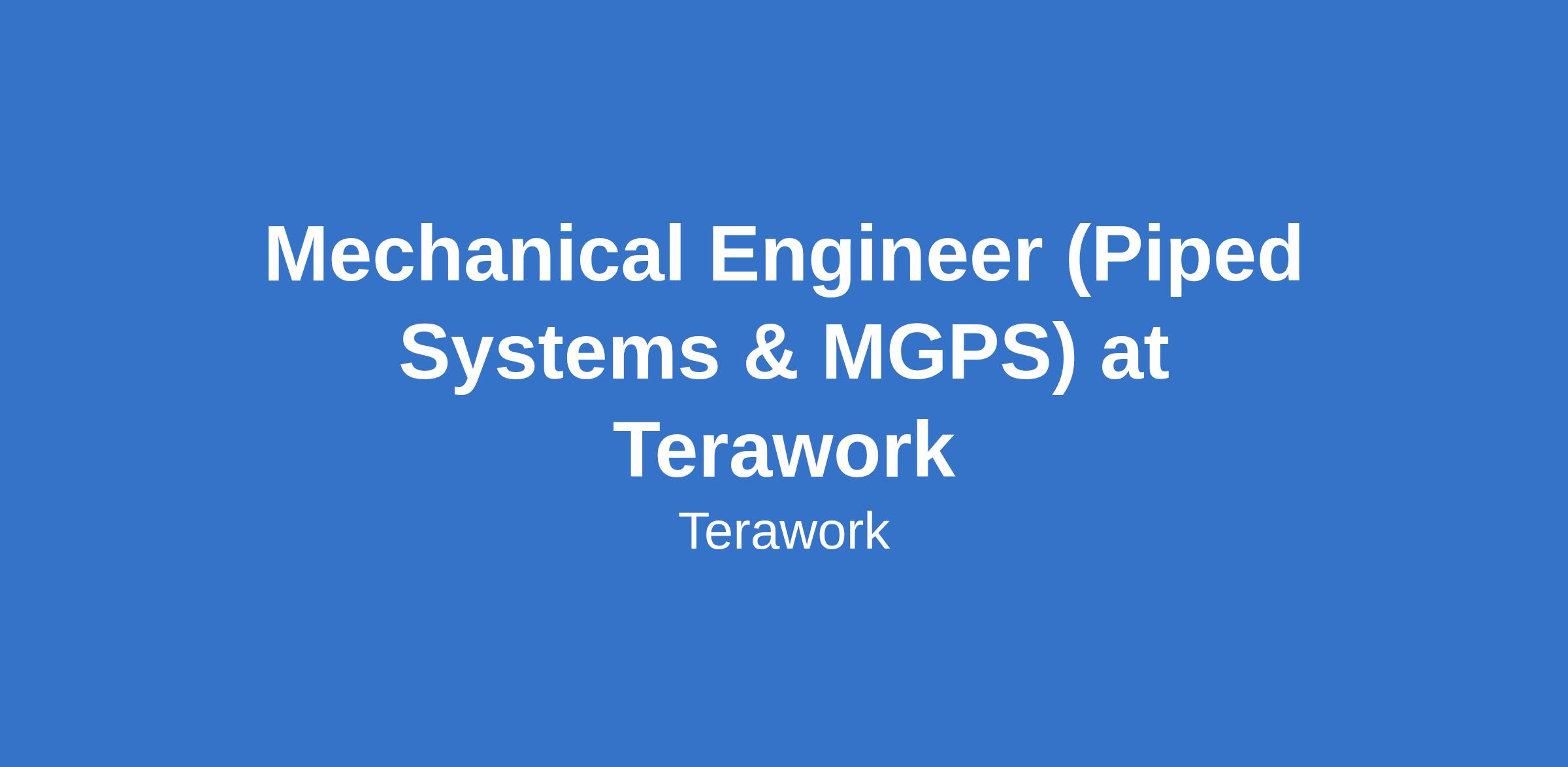 Mechanical Engineer (Piped Systems & MGPS) at Terawork