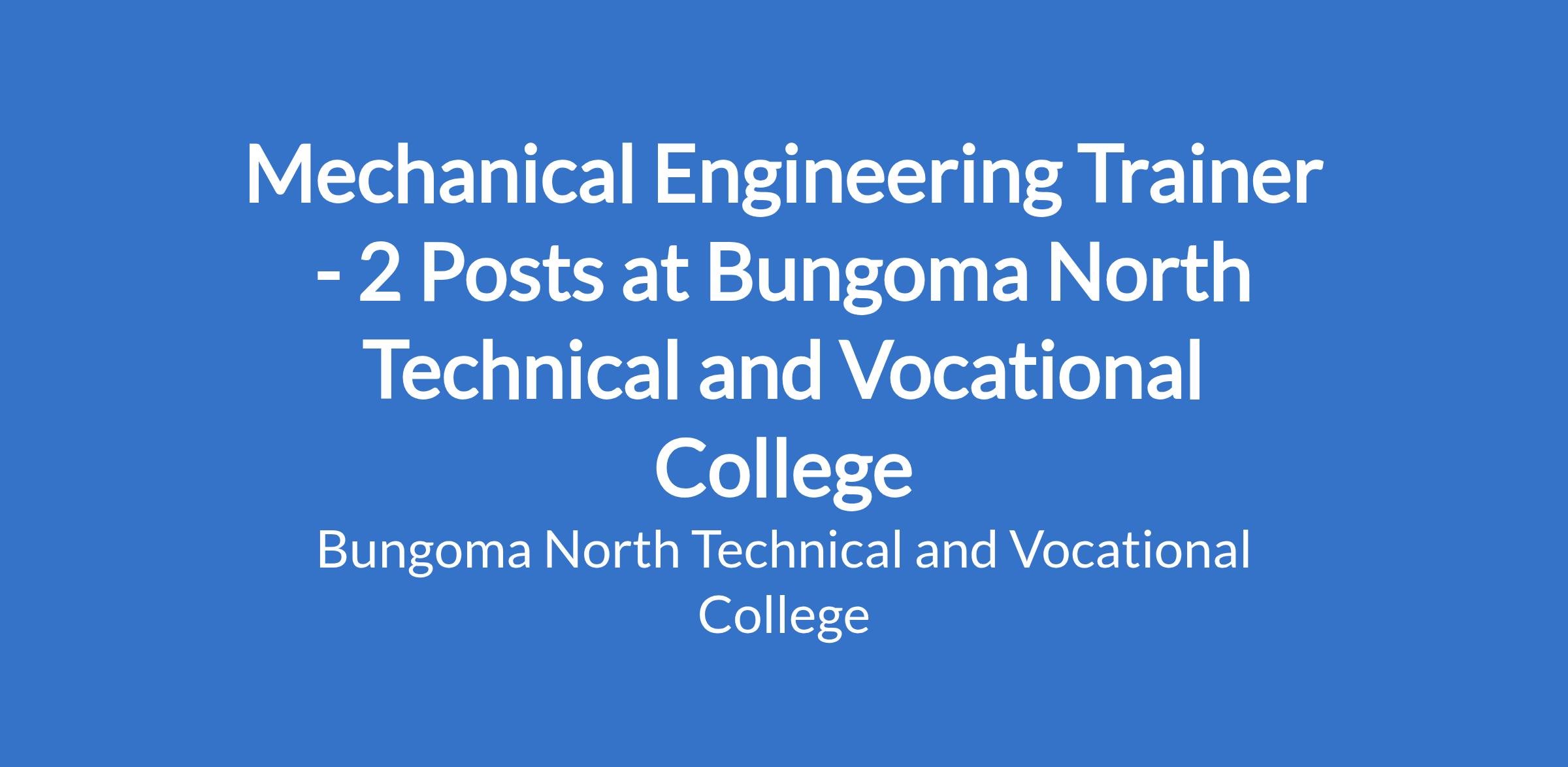 Mechanical Engineering Trainer - 2 Posts at Bungoma North Technical and Vocational College