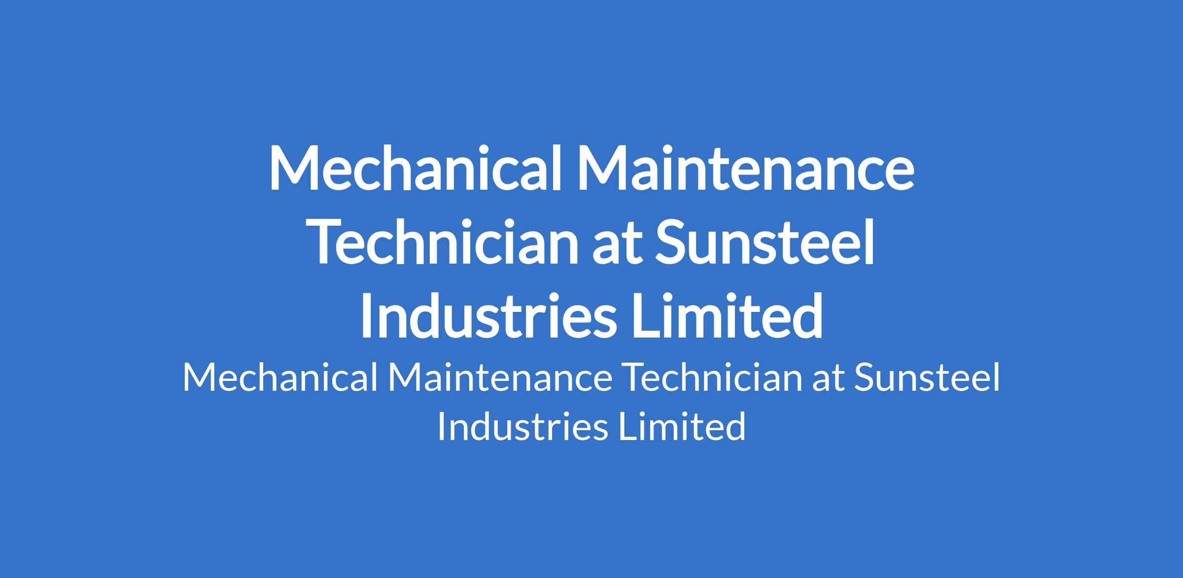 Mechanical Maintenance Technician at Sunsteel Industries Limited