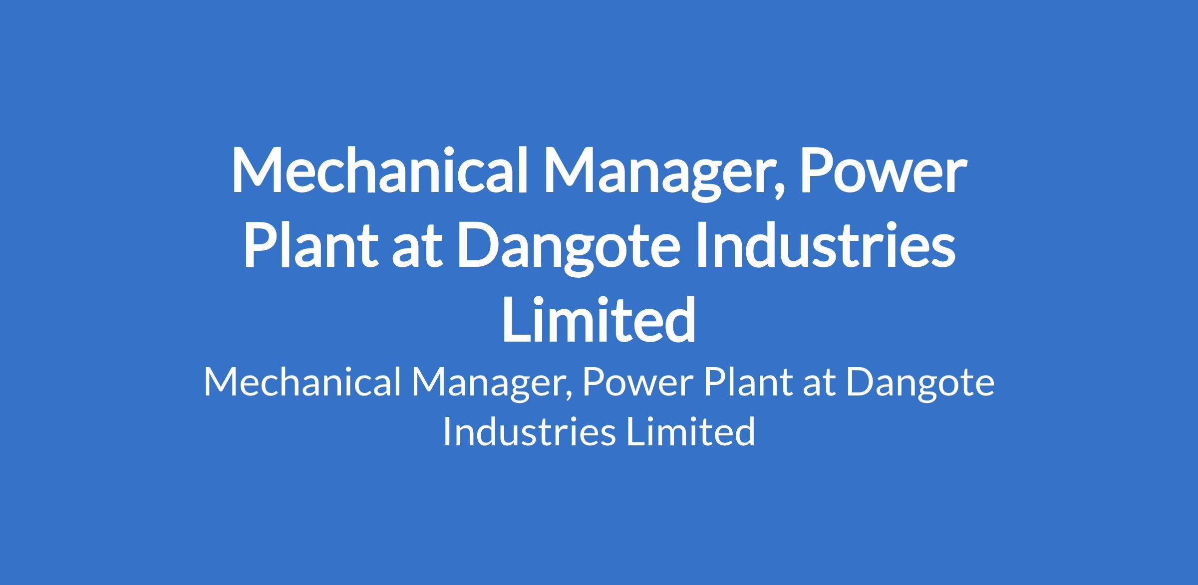 Dangote Industries Limited is recruiting to fill the position of: Mechanical Manager, Power Plant. The position is located in Obajana Plant,Kogi State. Interested candidates should possess a Bachelors Degree or its equivalent in Mechanical Engineering with a minimum of Fifteen (15) years of Power Plant relevant work experience in Gas-based power plant operations.