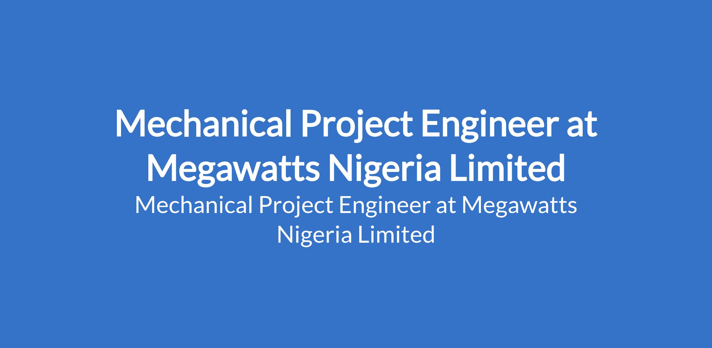 Megawatts Nigeria Limited is recruiting to fill the position of: Mechanical Project Engineer. The position is located in Lagos State. Interested candidates should possess a Bachelor's Degree or Diploma in Mechanical or Electrical Engineering with 3-6 years of experience as an Mechanical Site Engineer in construction projects.