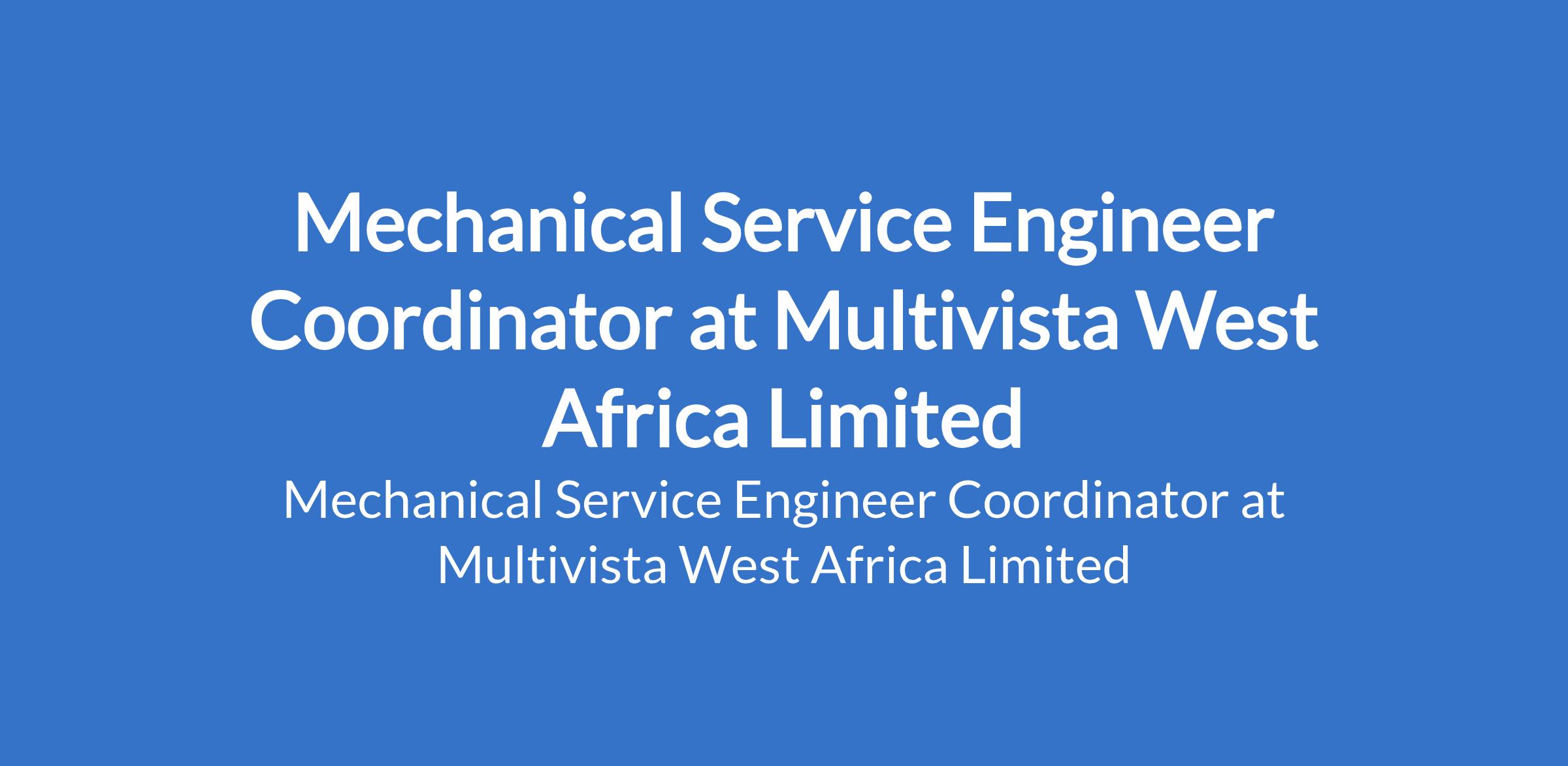 Mechanical Service Engineer Coordinator at Multivista West Africa Limited