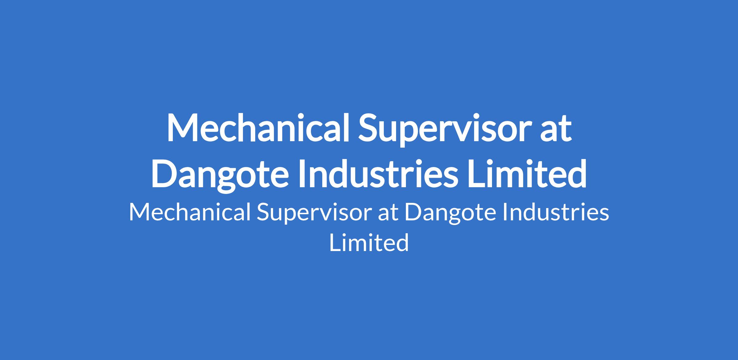 Dangote Industries Limited is recruiting to fill the position of: Mechanical Supervisor. The position is located in Apapa, Lagos State. Interested candidates should possess a B.Sc. / HND in Mechanical Engineering or related fields with 57 years of experience in mechanical operations or maintenance in a manufacturing, refinery, or processing environment.