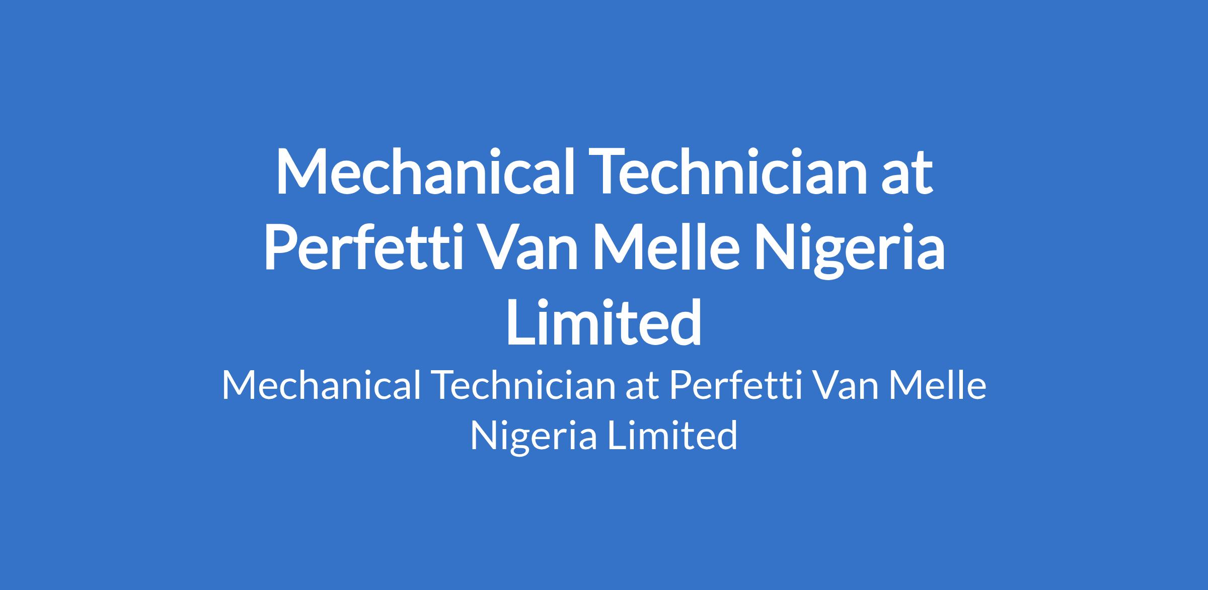 Perfetti Van Melle Nigeria Limited is recruiting to fill the position of: Mechanical Technician. The position is located in Lagos State. Interested candidates should be Holders of Ordinary National Diploma (OND) in Mechanical Engineering with 3 5 years experience within the confectionery industry.
