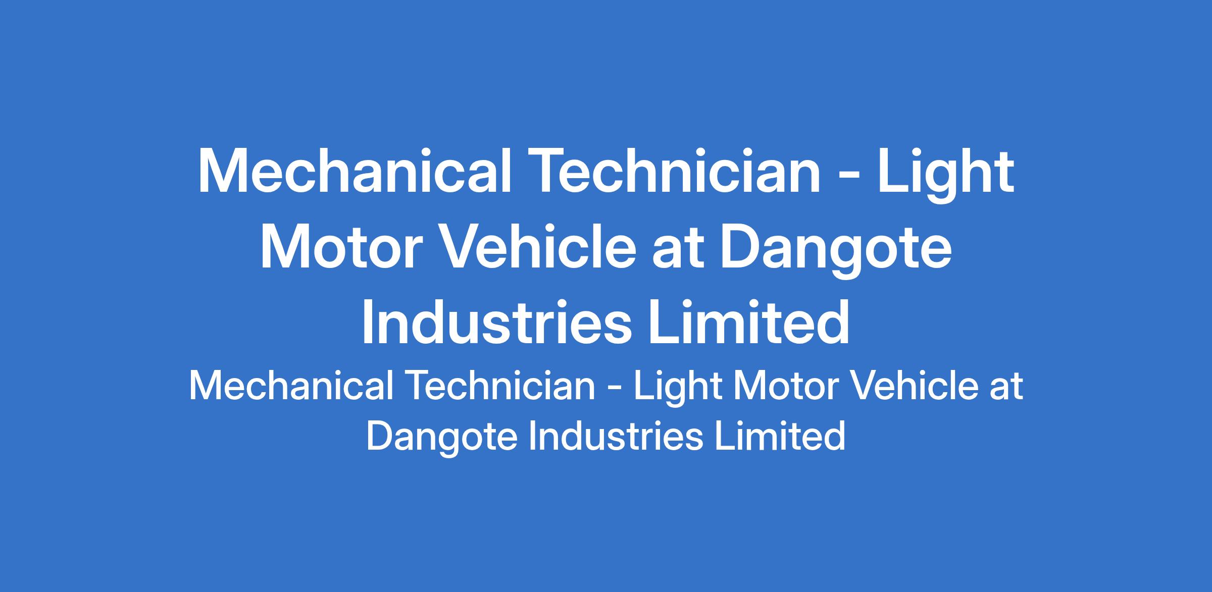 Dangote Industries Limited is recruiting to fill the position of: Mechanical Technician - Light Motor Vehicle. The position is located in Obajana, Kogi State. Interested candidates should possess an OND in Mechanical Engineering with minimum of Three (3) years working experience as an LMV Technician, Trade Test 1 with minimum of Eight (8) years working experience as an LMV Technician.