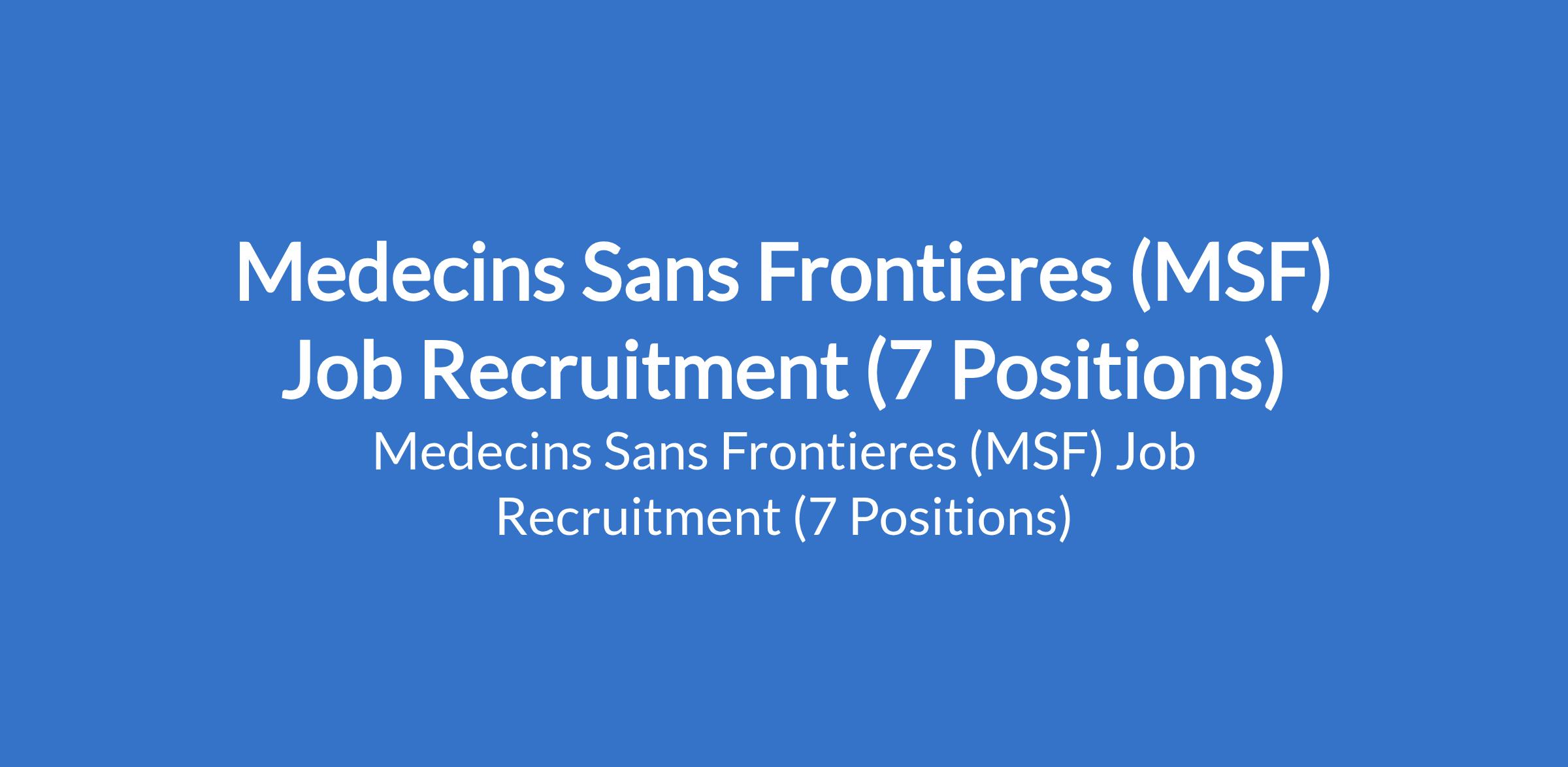 Medecins Sans Frontieres (MSF) is currently recruiting suitably qualified candidates to fill the following positions in Abuja, Jigawa and Anambra States: Waste Area Technician, Transport and Customs Supervisor, Safeguarding Officer, Driver, Community Health Educator, Safeguarding Officer, and Data Protection Advisor.