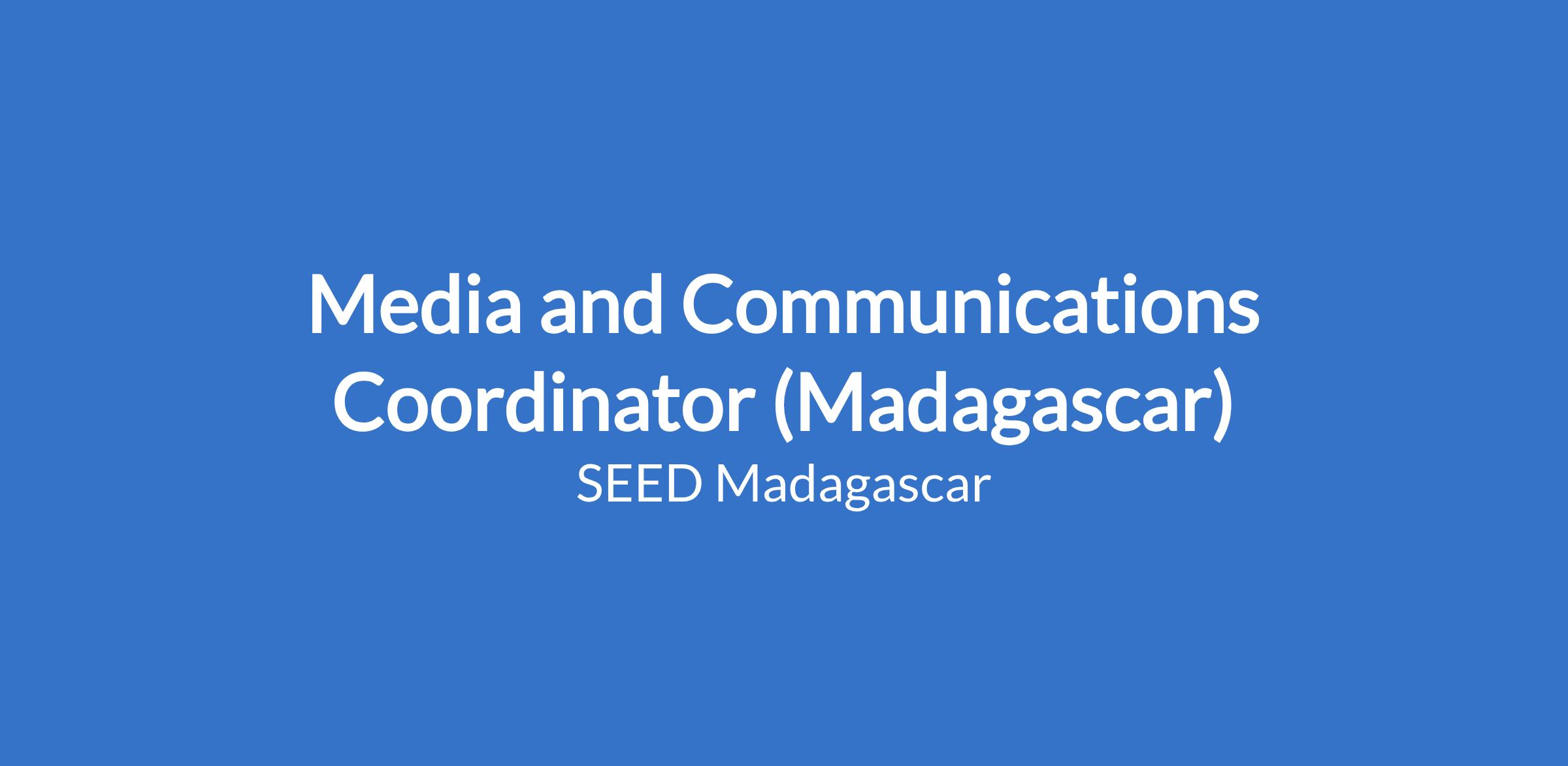Interested applicants should send a CV and covering letter in English outlining why they wish to take up this position and how their skills and experience match the requirements in the job description criteria to SEED Madagascar Director of Programmes and Operations, Lisa Bass by email on lisa@seedmadagascar.org.