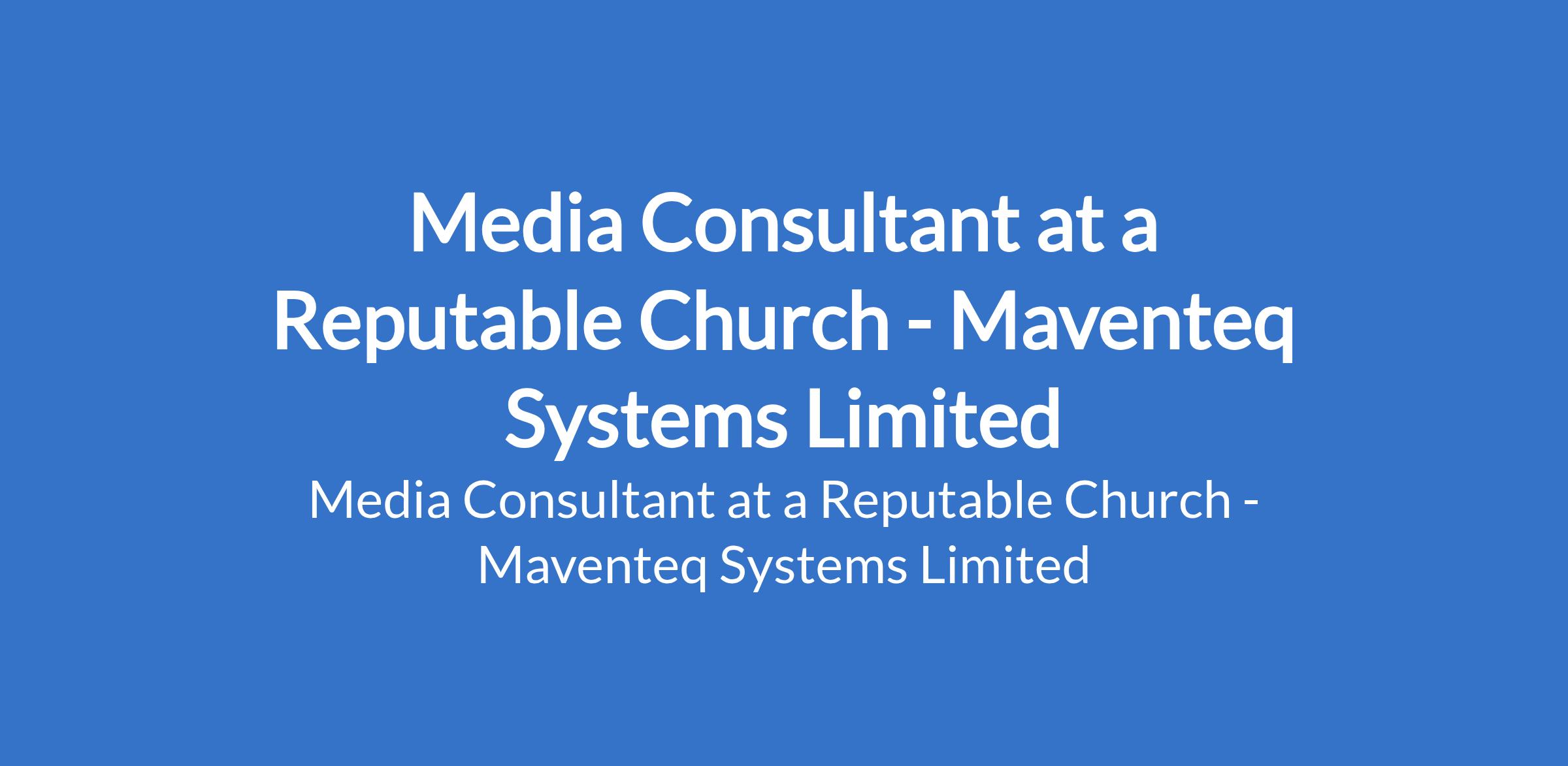 Maventeq Systems Limited - Our client, a reputable Church is recruiting to fill the position of: Media Consultant. The position is located in Lagos State. Interested candidates should possess a Bachelors degree in Mass Communication, Media Studies, Journalism, Marketing, or related field with 37 years of proven experience in media consulting, PR, or communications.