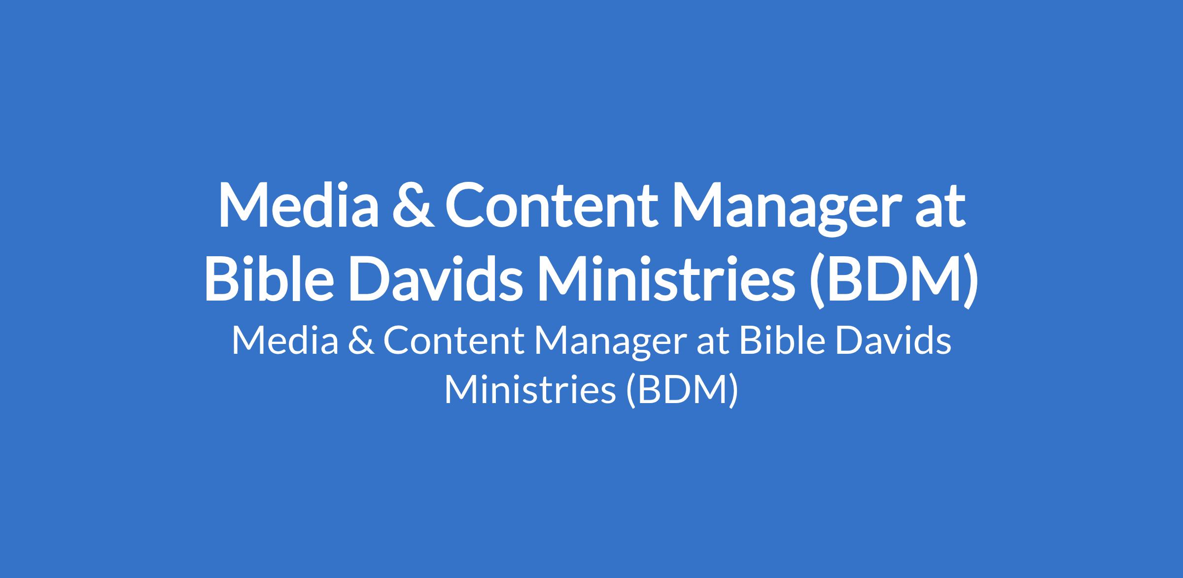 Bible Davids Ministries (BDM) is recruiting to fill the position of: Media & Content Manager. The position is located in Abuja. Interested candidates should possess a Bachelors Degree in Media Production, Film, Communications, or a related field with a minimum of 5+ years of experience in creative production, media, or broadcast environments