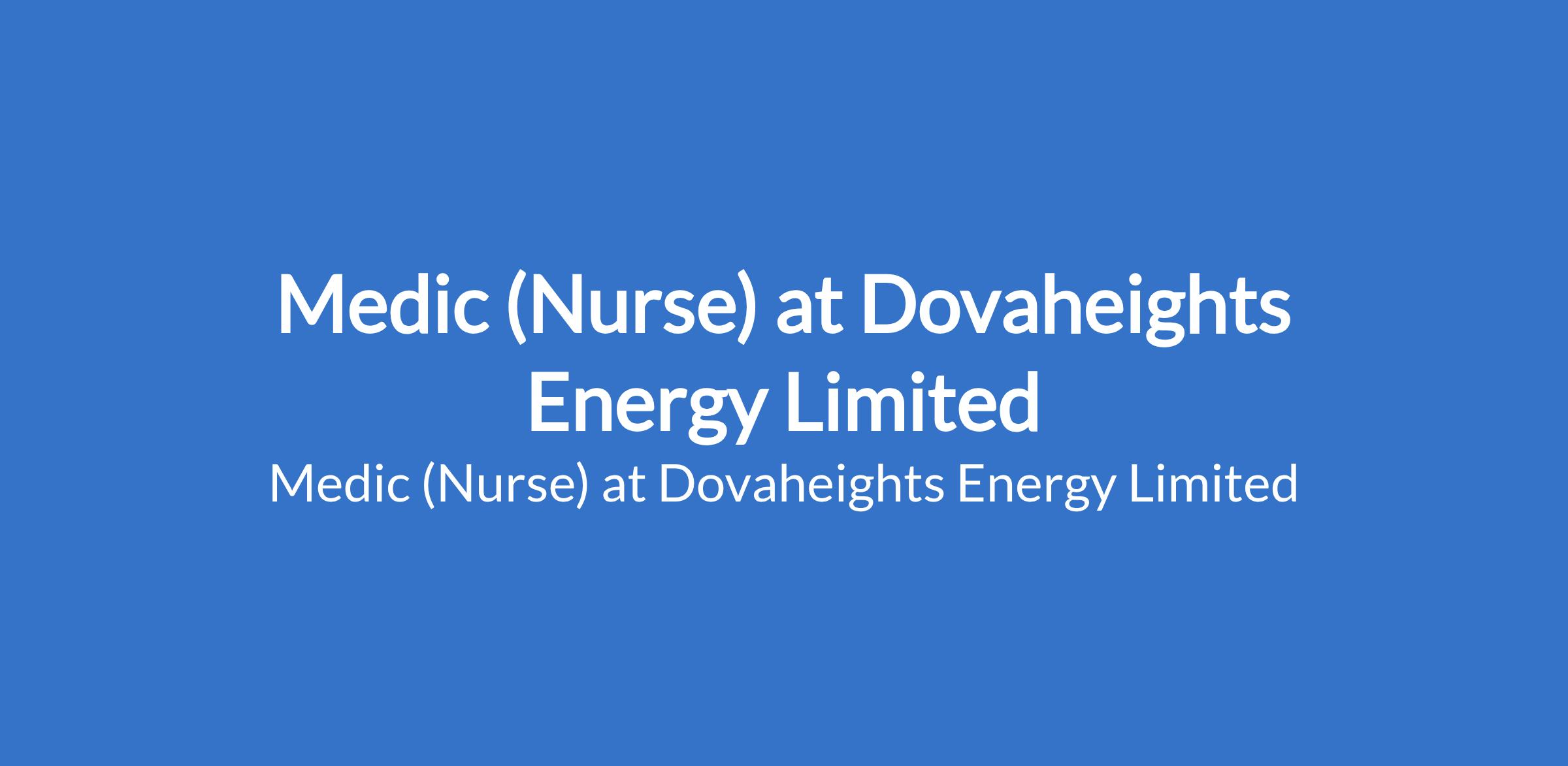 Dovaheights Energy Limited is recruiting to fill the position of: Medic (Nurse). The position is located in Lagos State. Interested candidates should possess relevant qualifications.