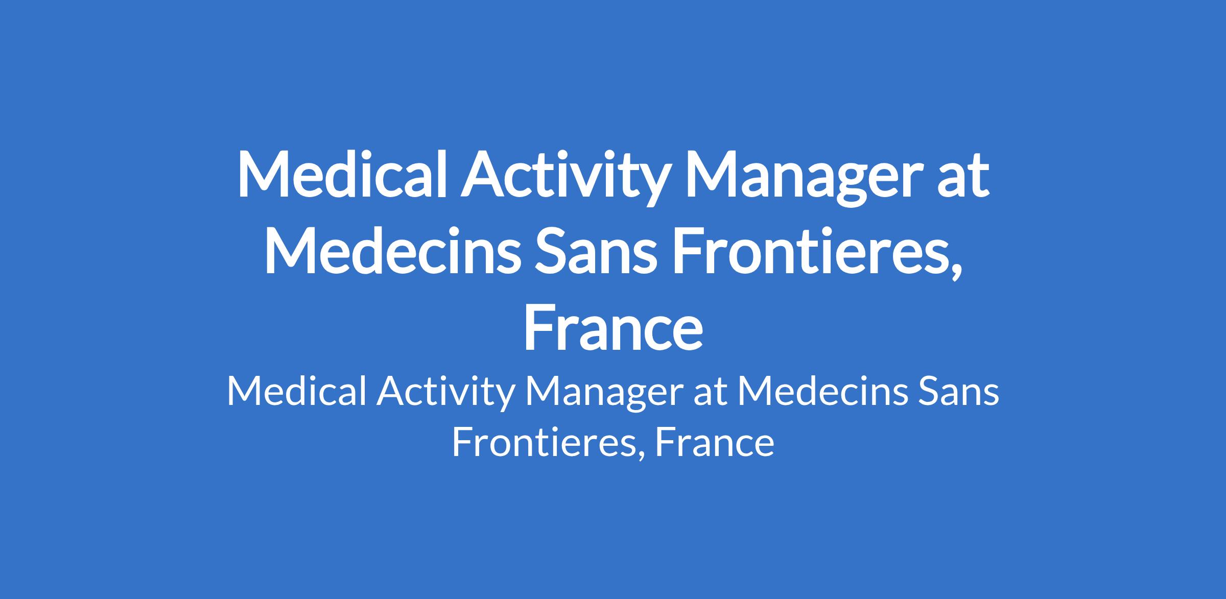 Medical Activity Manager at Medecins Sans Frontieres, France