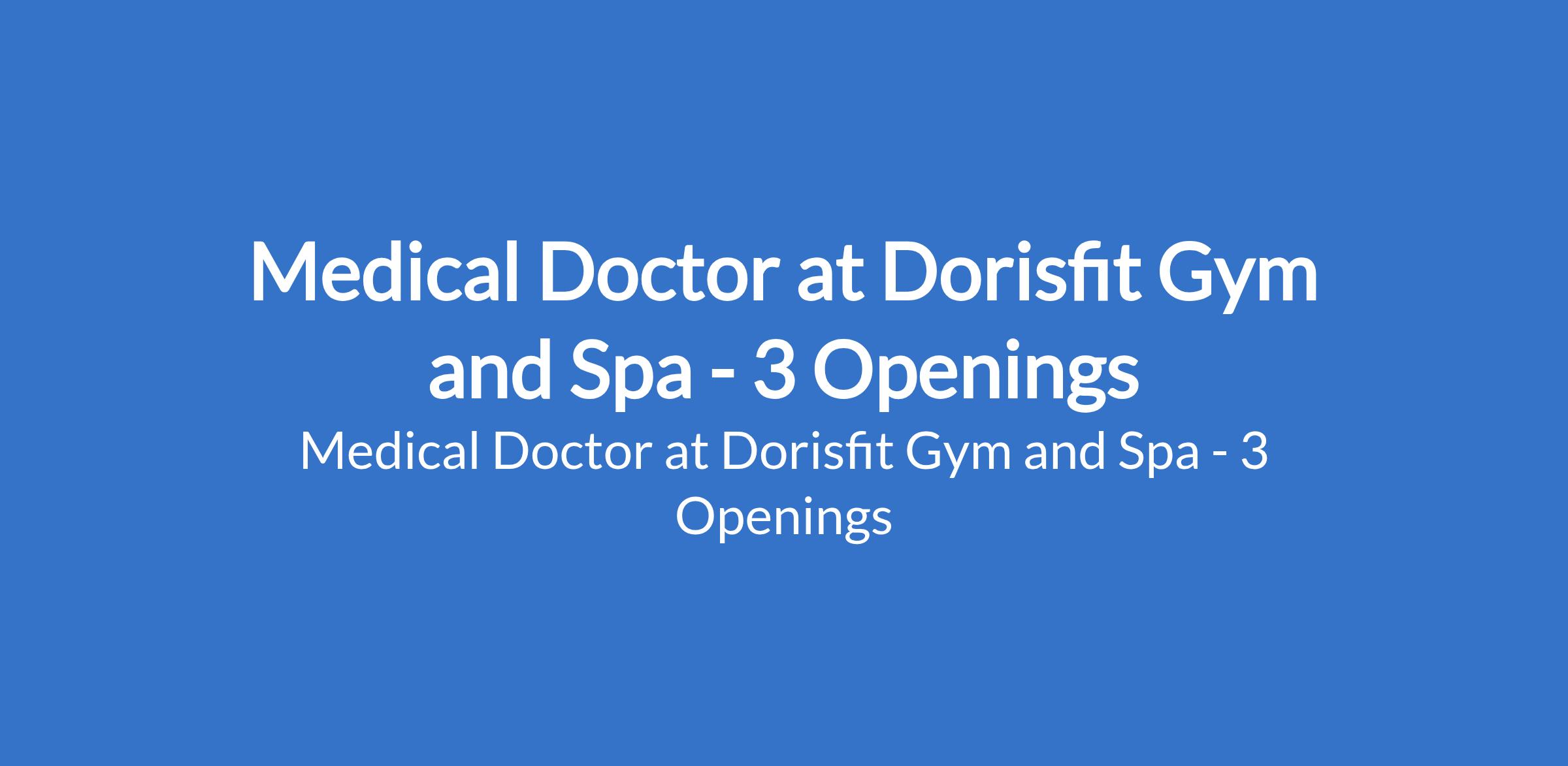 Medical Doctor at Dorisfit Gym and Spa - 3 Openings