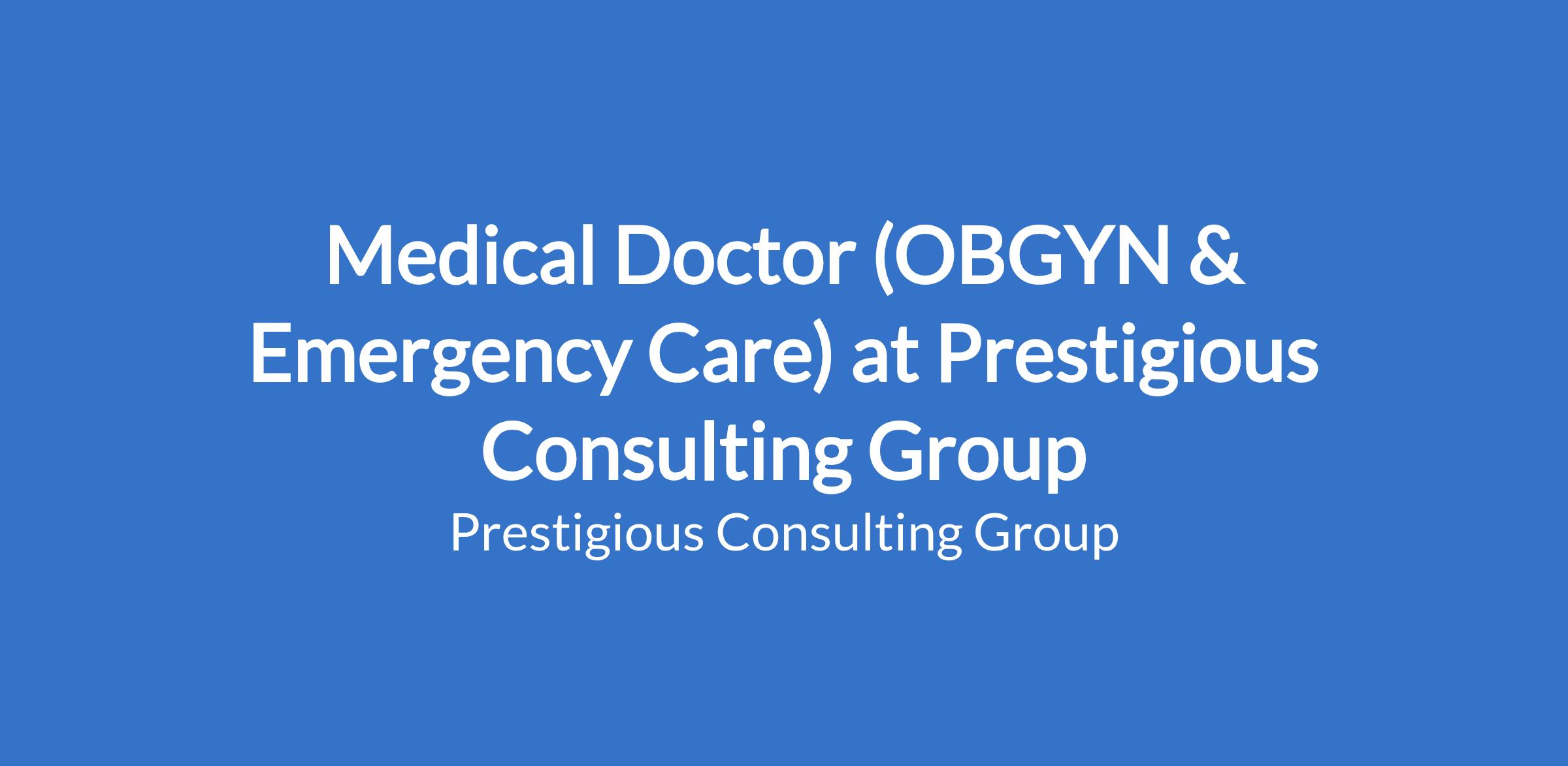 We are seeking a qualified and dedicated Medical Doctor with experience in Obstetrics & Gynaecology (OBGYN) and Emergency Care to join our healthcare team.