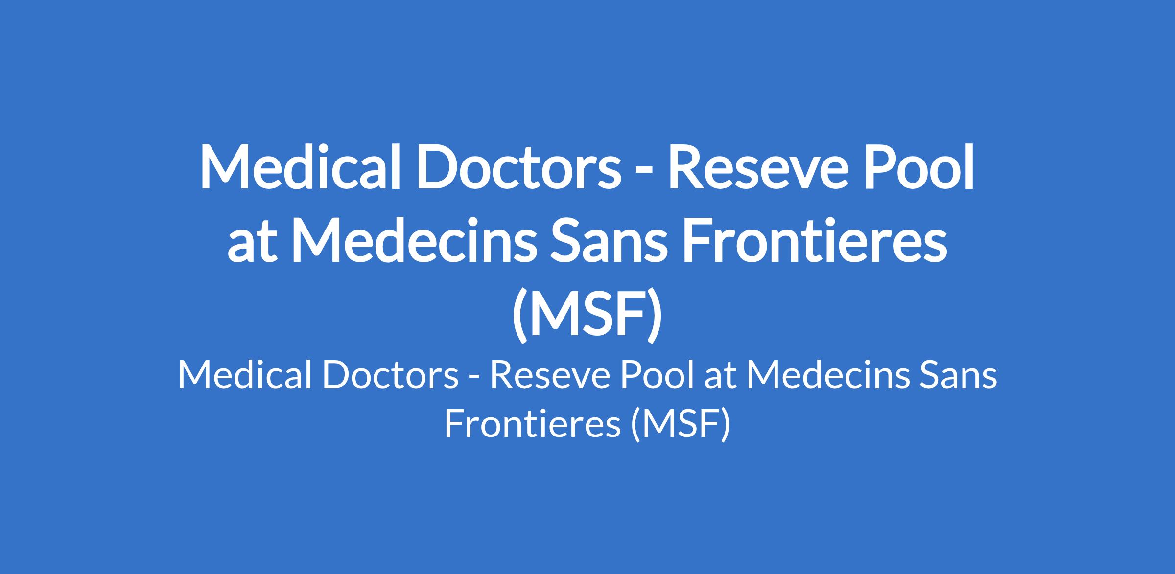 Medical Doctors - Reseve Pool at Medecins Sans Frontieres (MSF)