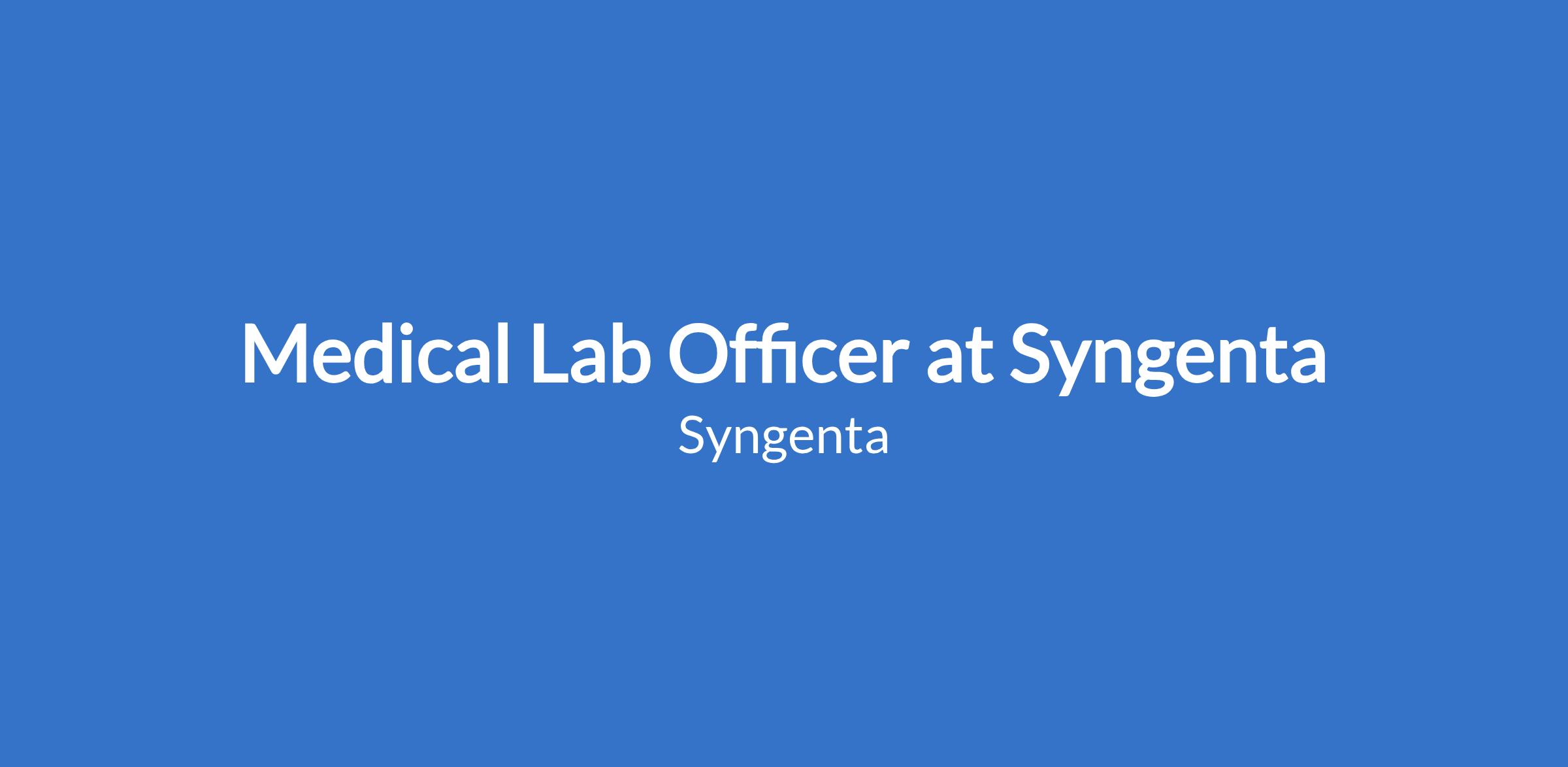 Medical Lab Officer at Syngenta