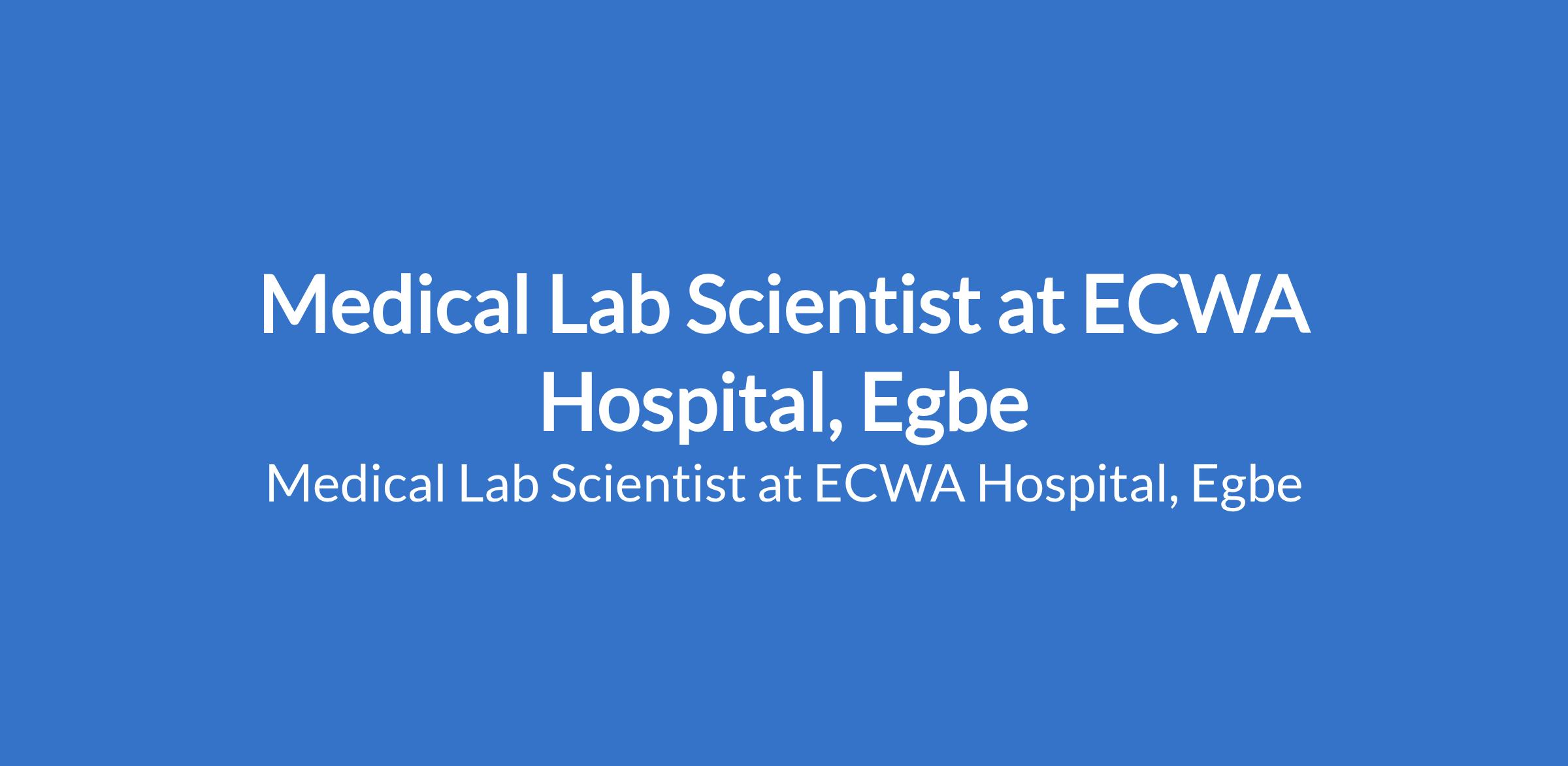 ECWA Hospital, Egbe is recruiting to fill the position of: Medical Lab Scientist. The position is located in Kogi State. Interested candidates should possess a BSc in Medical Laboratory Science with at least two years of working experience in a clinical laboratory.