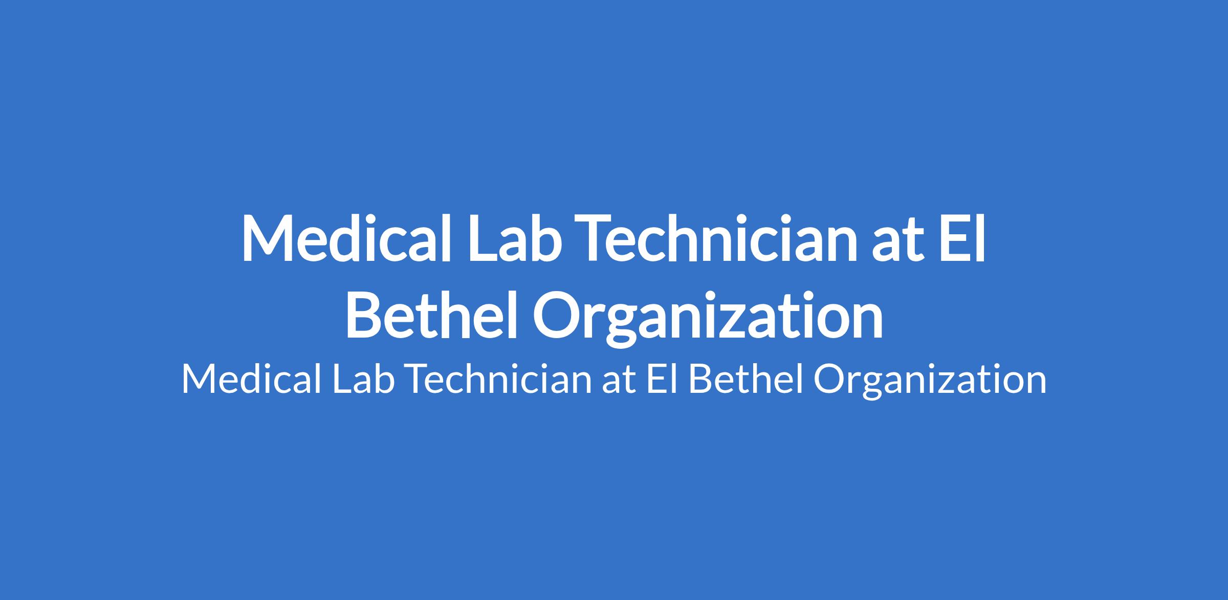 Medical Lab Technician at El Bethel Organization