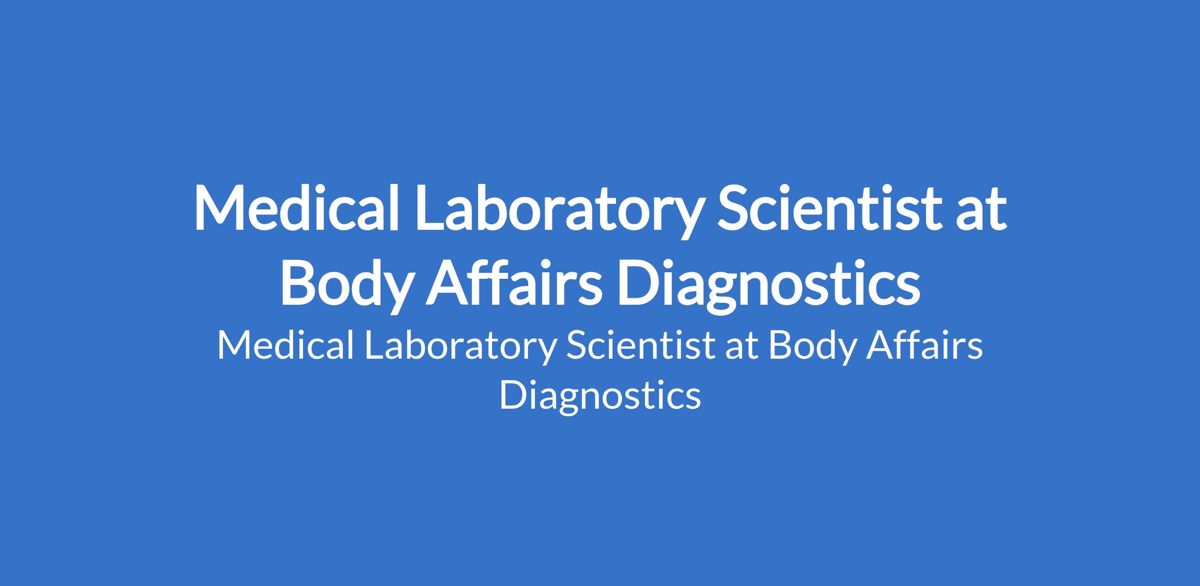 Medical Laboratory Scientist at Body Affairs Diagnostics