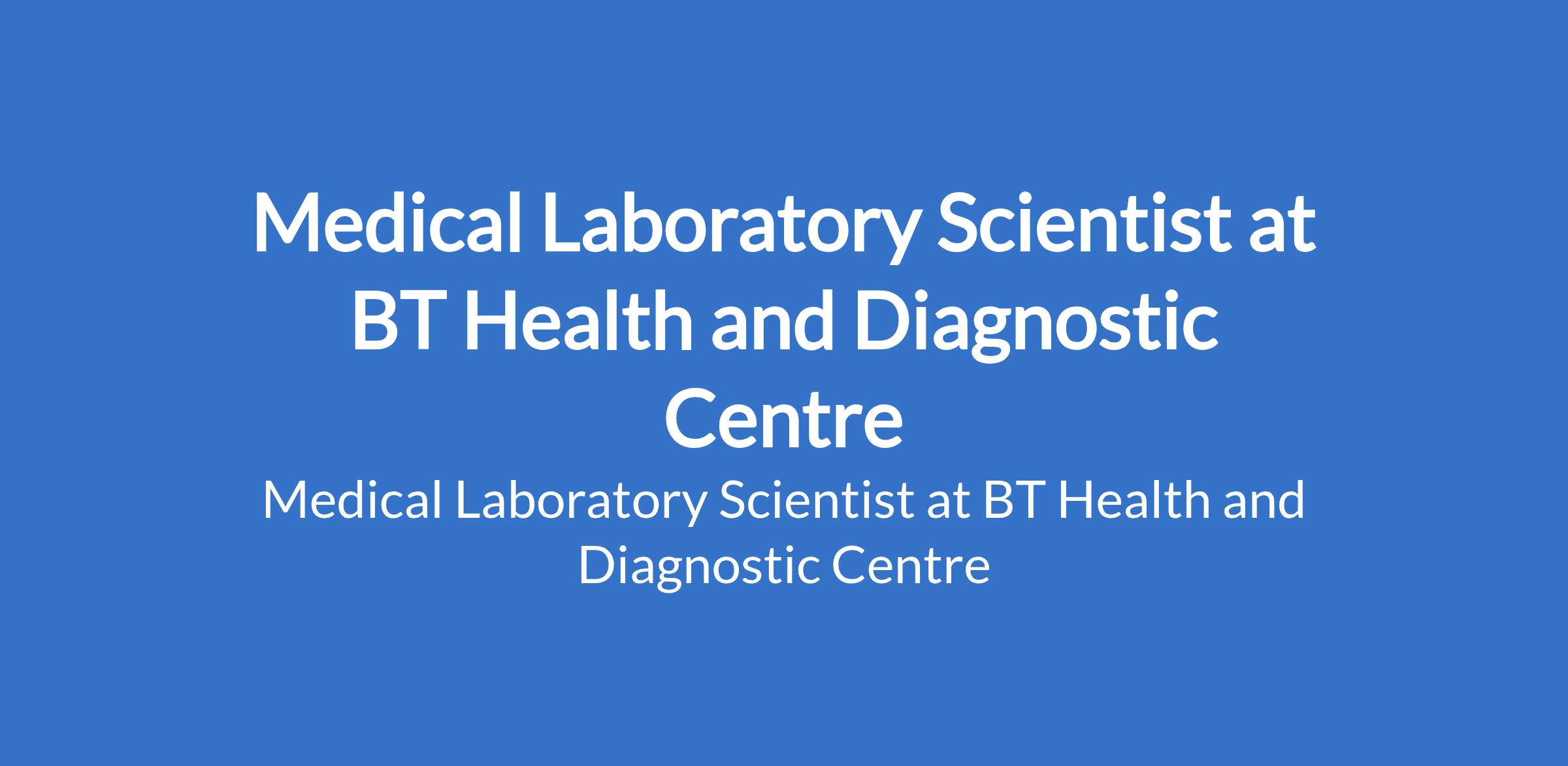 Medical Laboratory Scientist at BT Health and Diagnostic Centre