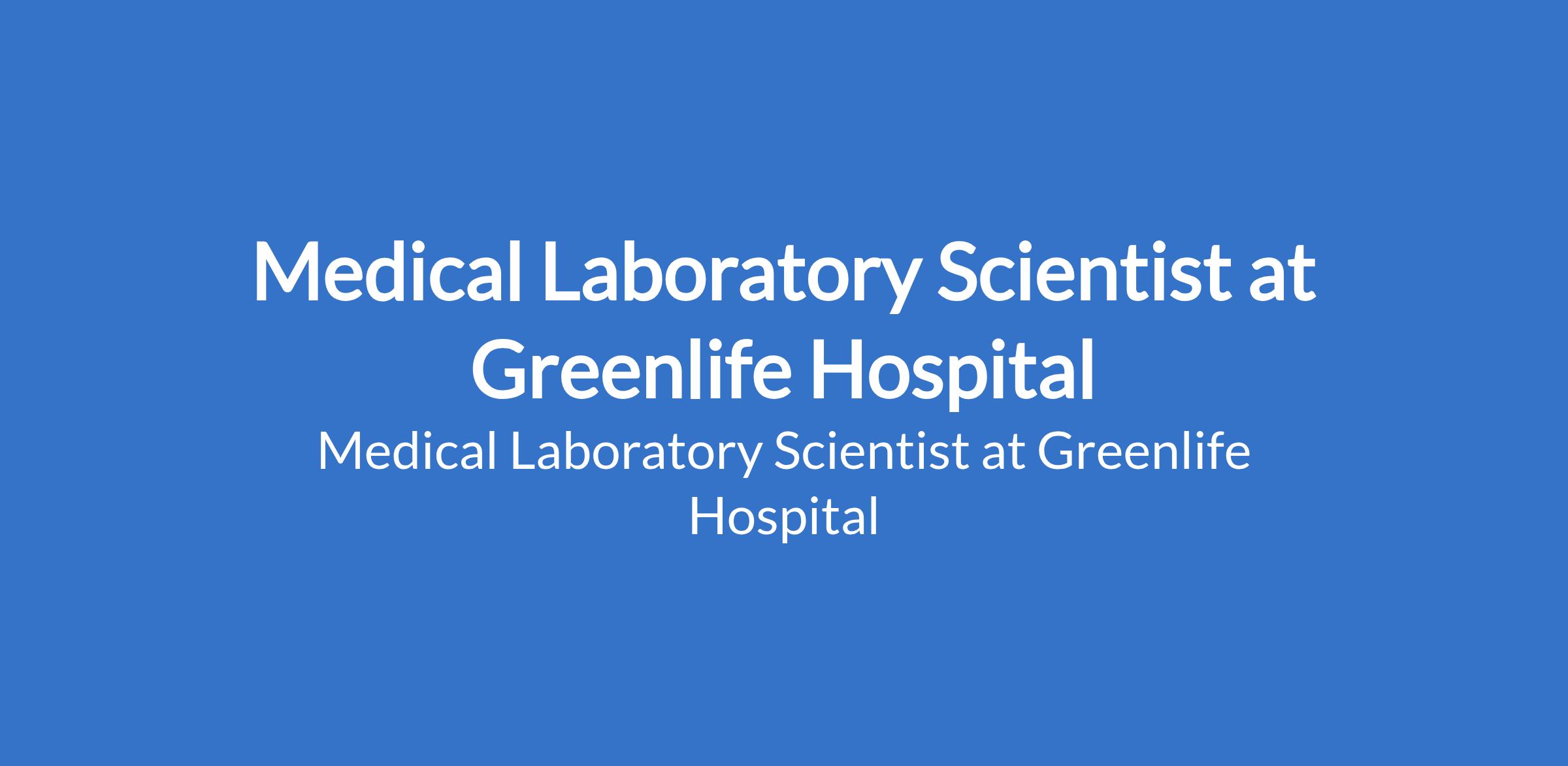 Medical Laboratory Scientist at Greenlife Hospital