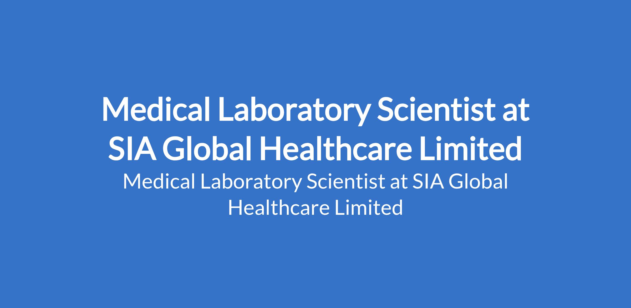 Medical Laboratory Scientist at SIA Global Healthcare Limited