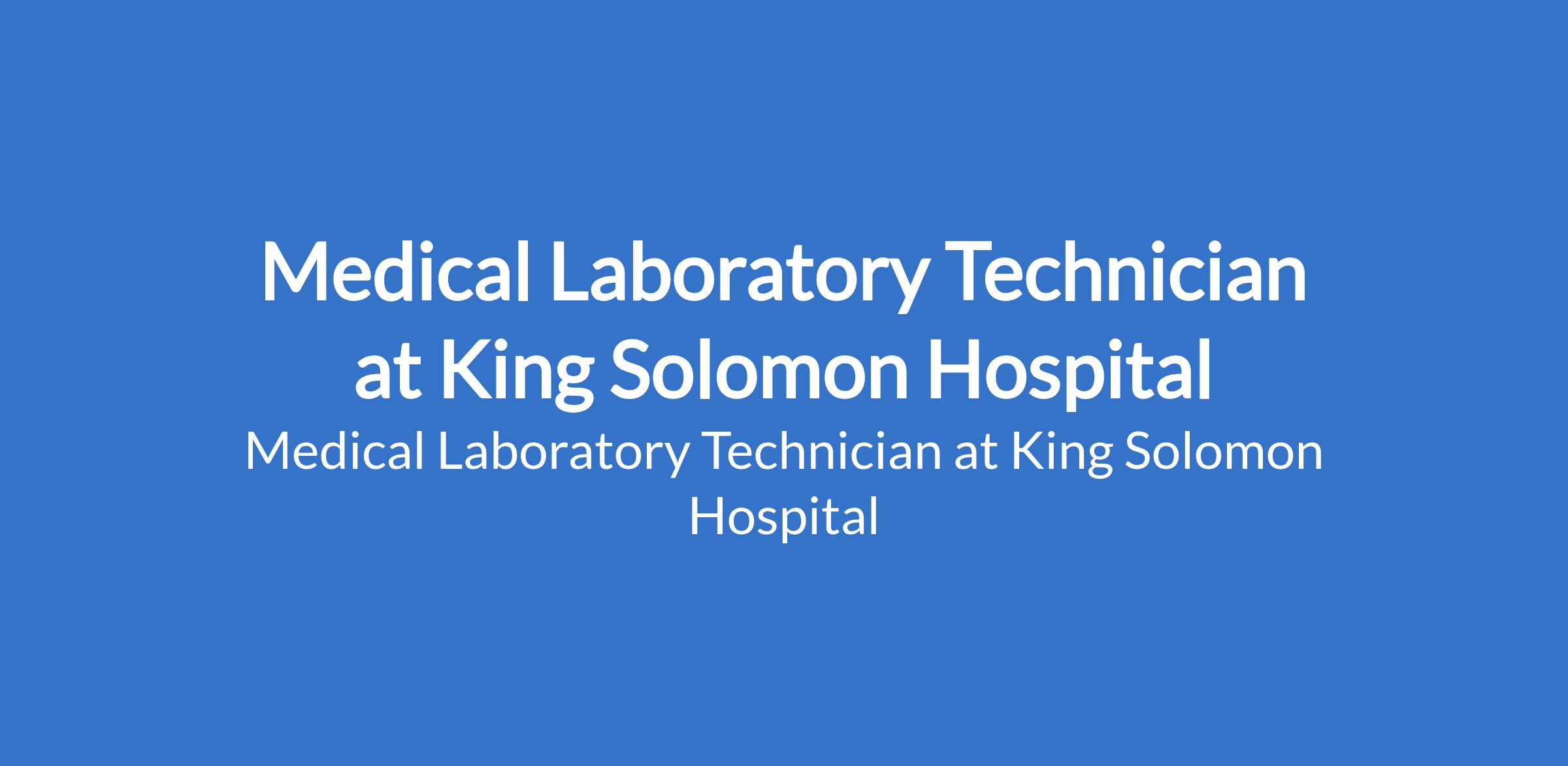 Medical Laboratory Technician at King Solomon Hospital