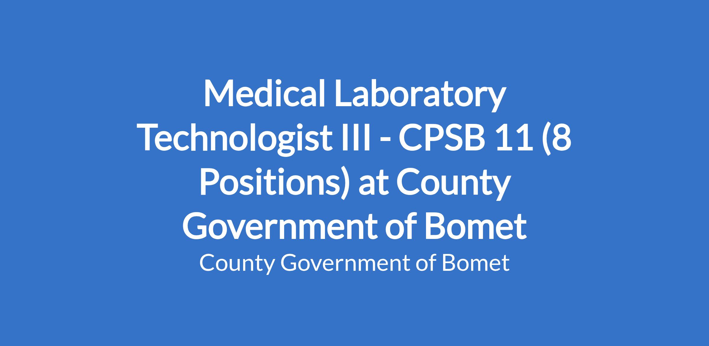 Diploma in medical laboratory sciences or any other equivalent qualifications from an institution recognized by the Kenya Medical Laboratory technicians and Technologist board.