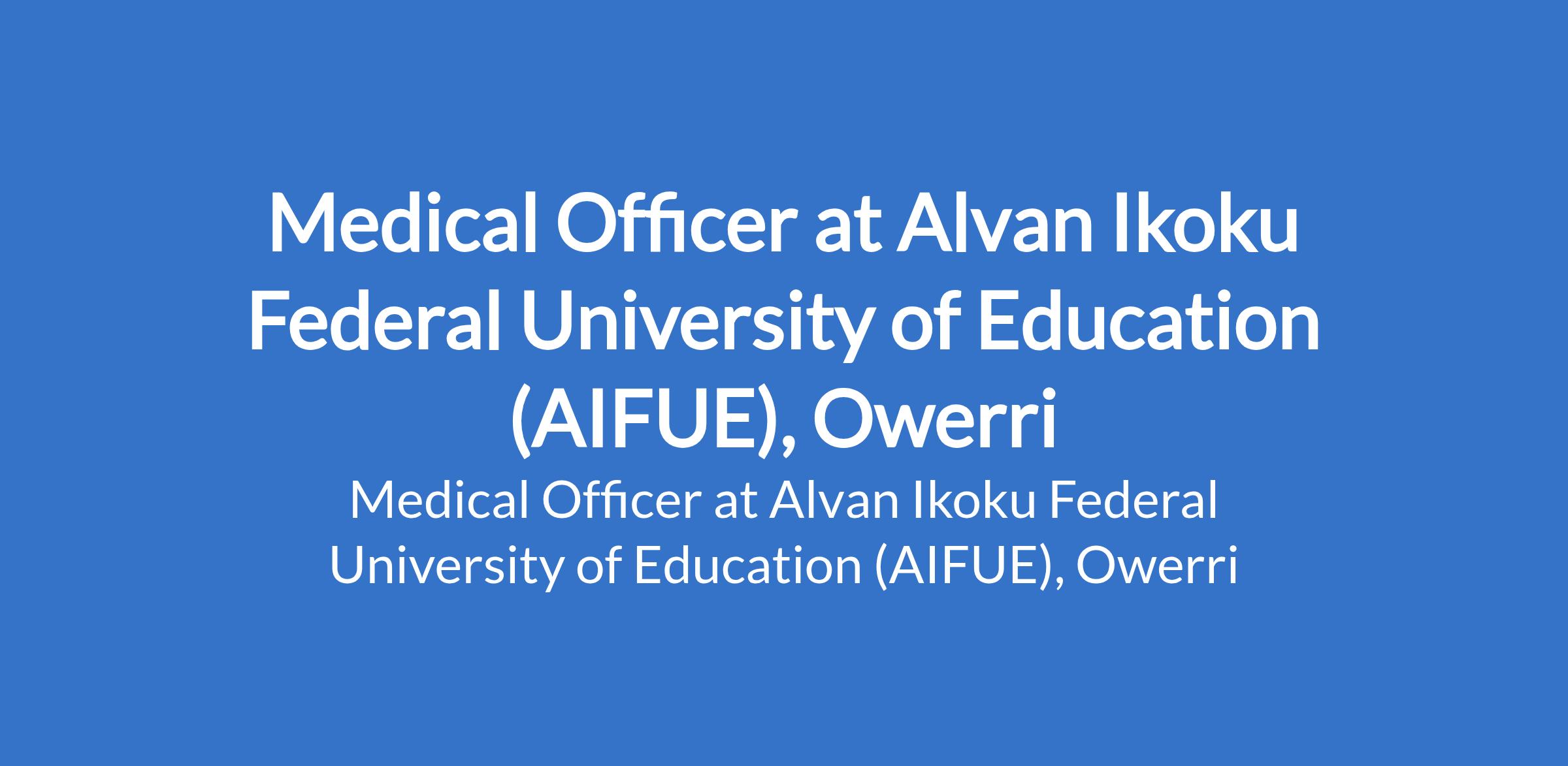 Alvan Ikoku Federal University of Education (AIFUE), Owerri invites applications from suitably qualified candidates for the position of: Medical Officer. The position is located in Imo State. Interested candidates should possess an MBBS Degree and full registration with the Medical and Dental Council of Nigeria (MDCN).
