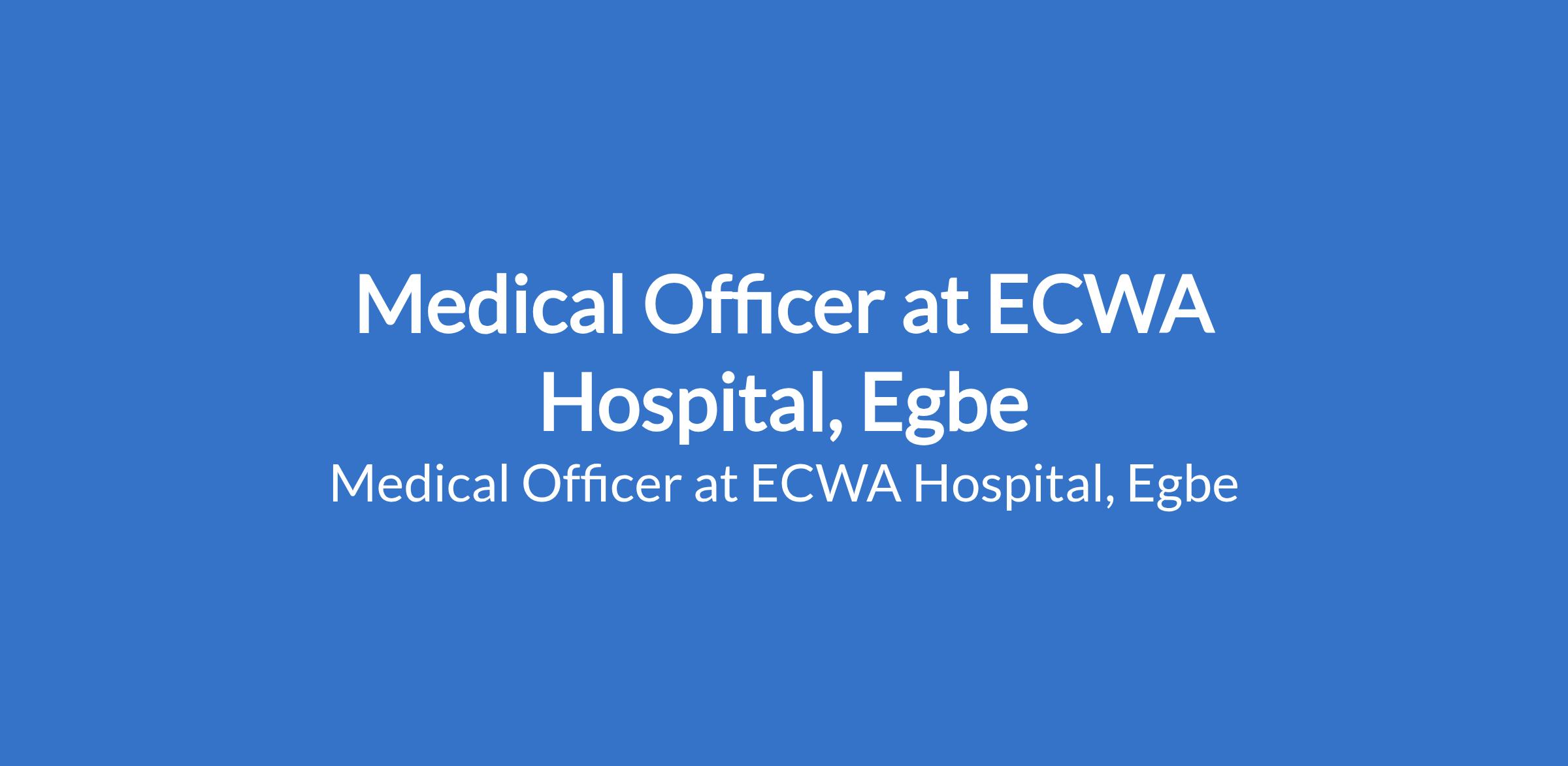 ECWA Hospital, Egbe is recruiting to fill the position of: Medical Officer. The position is located in Kogi State. Interested candidates should possess an M.B.B.S Degree and current practicing license from the Medical and Dental Council of Nigeria.
