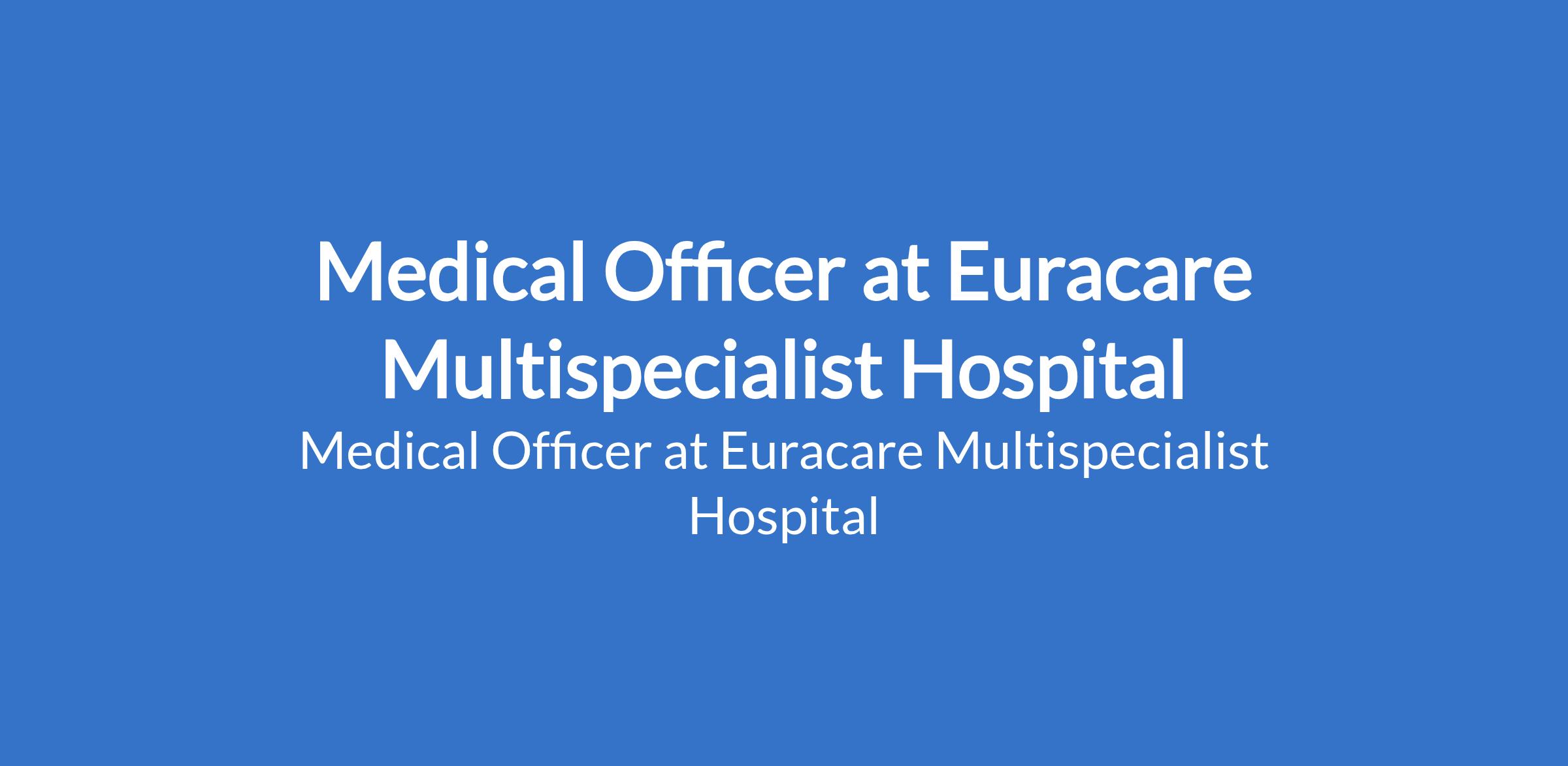 Euracare Multispecialist Hospital is recruiting to fill the position of: Medical Officer. The position is located in Victoria Island, Lagos State. Interested candidates should possess a Bachelor of Medicine, Bachelor of Surgery (MBBS / MBChB) with 25 years clinical experience (post-NYSC experience).