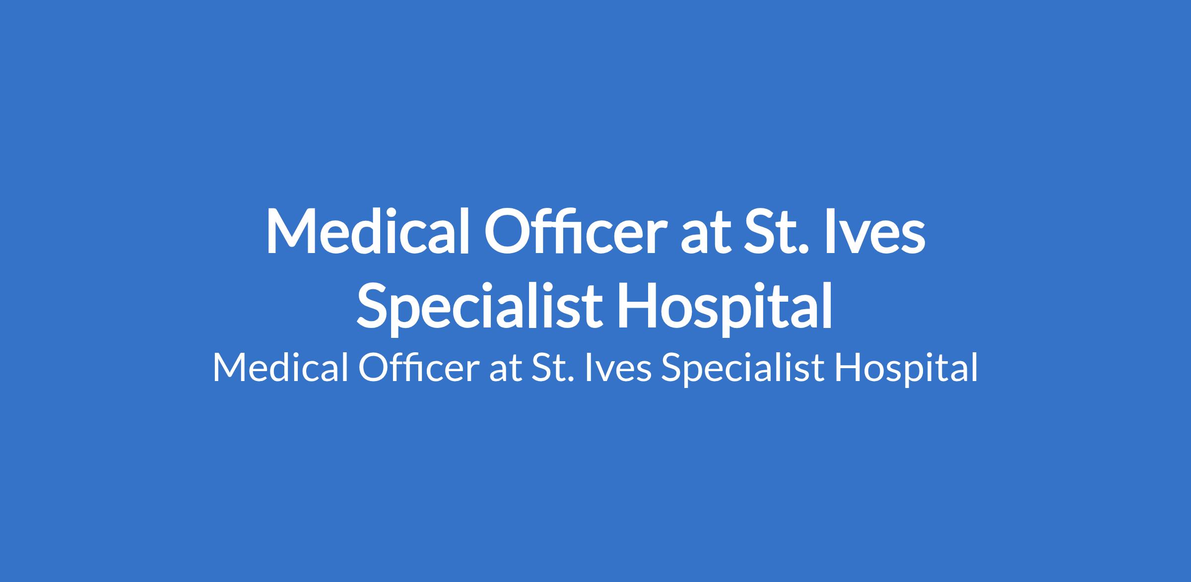 Medical Officer at St. Ives Specialist Hospital