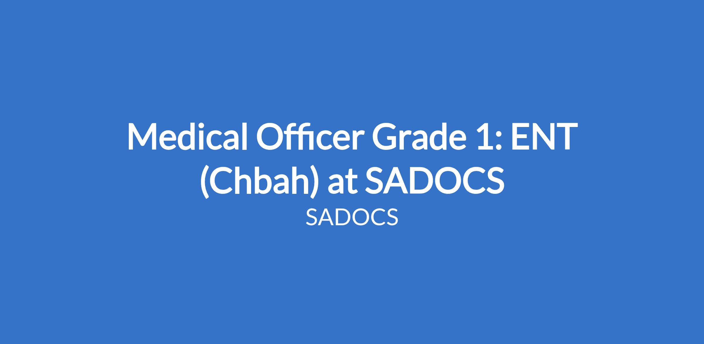 Medical Officer Grade 1: ENT (Chbah) at SADOCS
