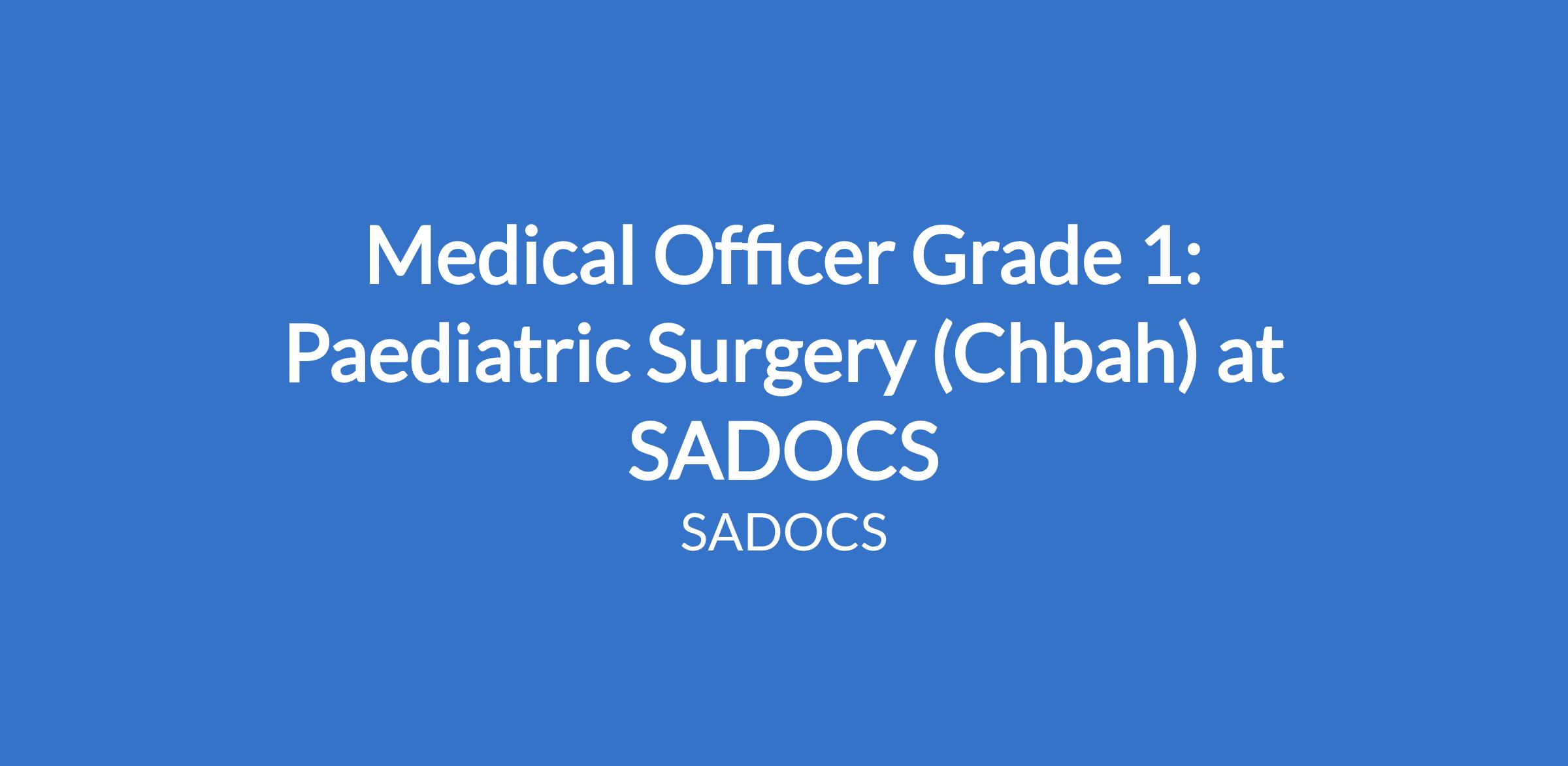 Medical Officer Grade 1: Paediatric Surgery (Chbah) at SADOCS