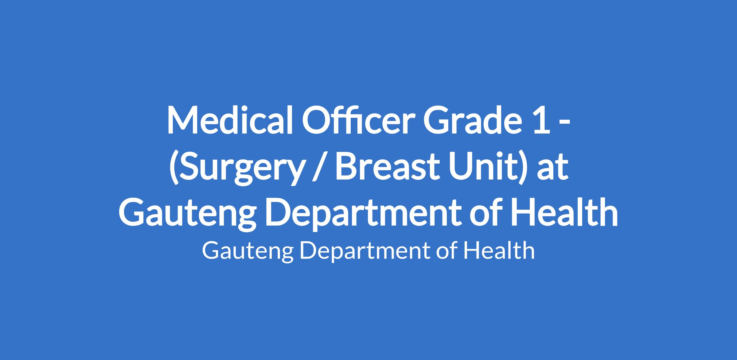 Appropriate qualification that allows registration with the HPCSA as a medical practitioner and proof of current registration required with the HPCSA. Experience in general surgery will be an added advantage. ATLS and BSS must have been completed.