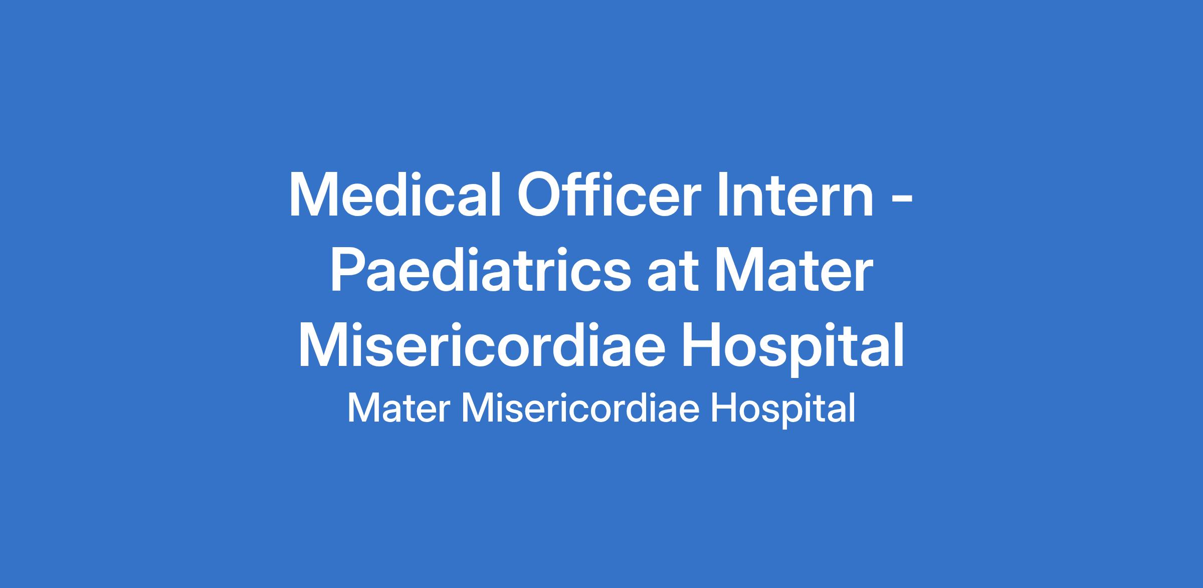 Medical Officer Intern - Paediatrics at Mater Misericordiae Hospital