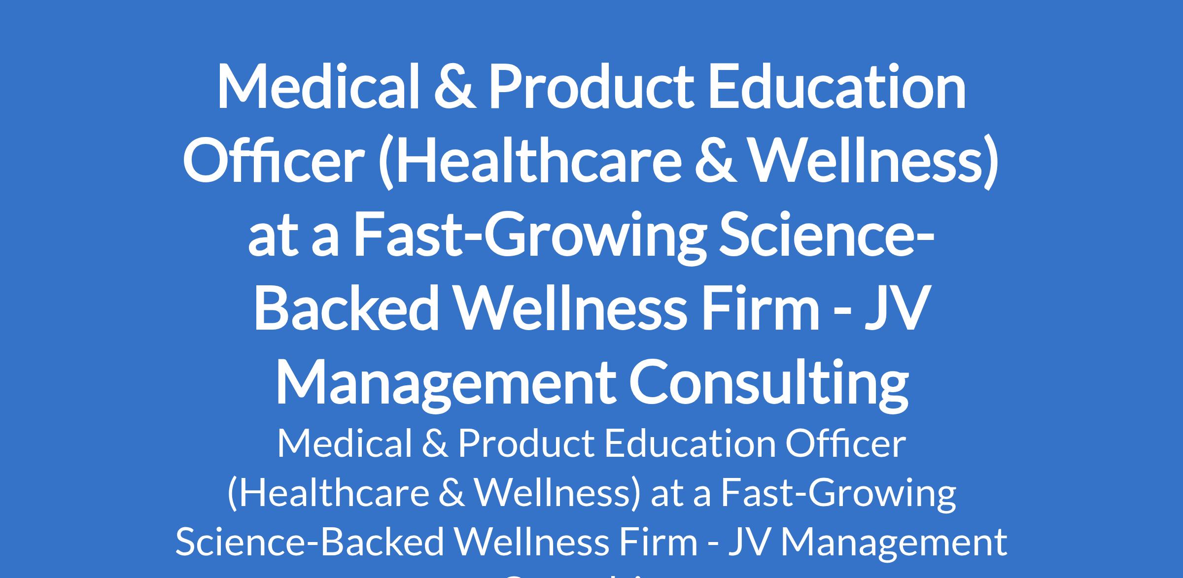 JV Management Consulting - Our client, a Fast-Growing Science-Backed Wellness Firm is recruiting to fill the position of: Medical & Product Education Officer (Healthcare & Wellness). The position is located in Wuse Zone 5, Abuja (FCT). Salary: N180,000 - N200,000 per month. Interested candidates should possess a Degree in Nursing, Medicine, Pharmacy, Biochemistry, Microbiology or related medical field with a minimum of 3 years post-qualification experience.