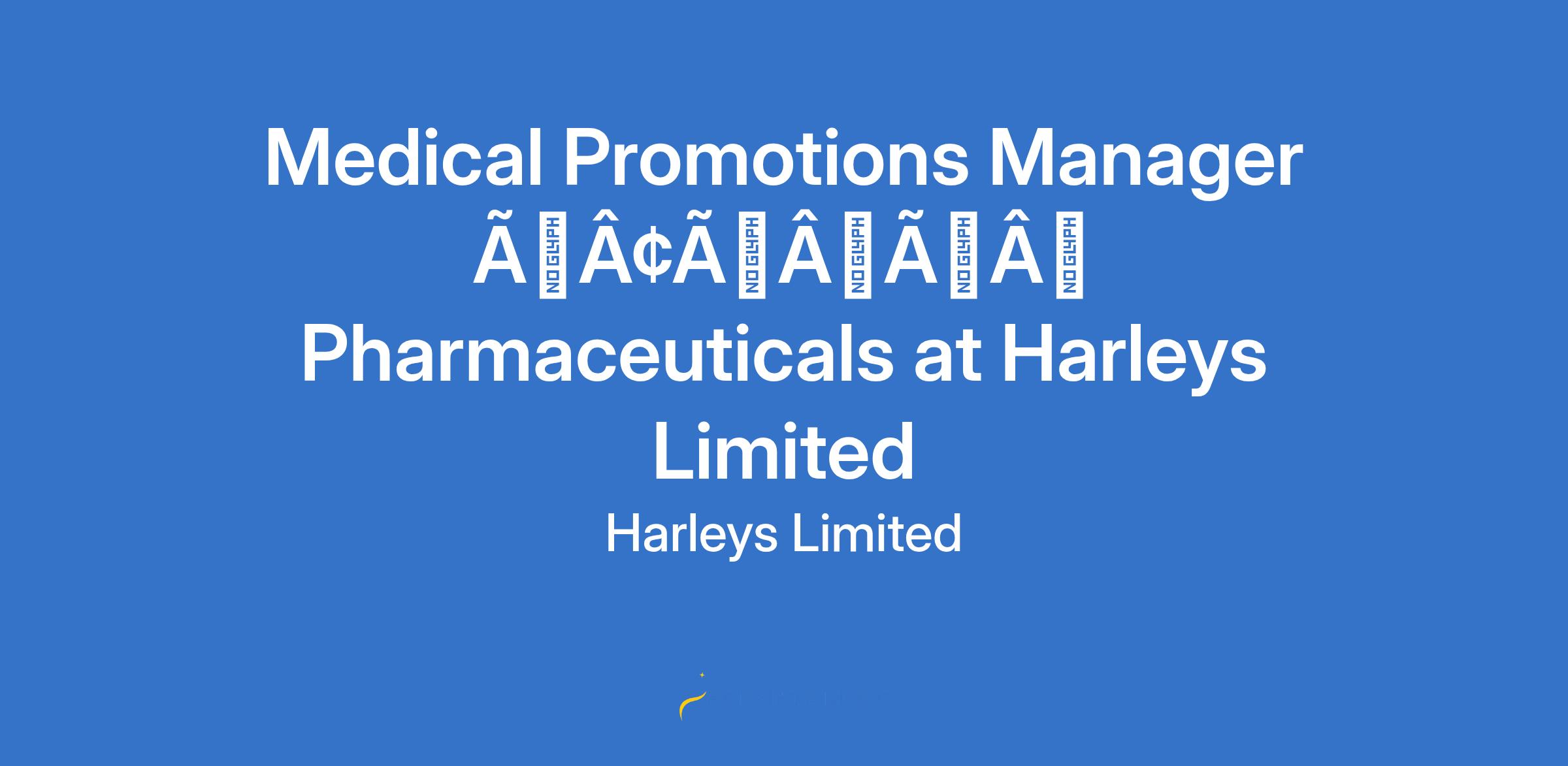 Medical Promotions Manager âÃÂàPharmaceuticals at Harleys Limited
