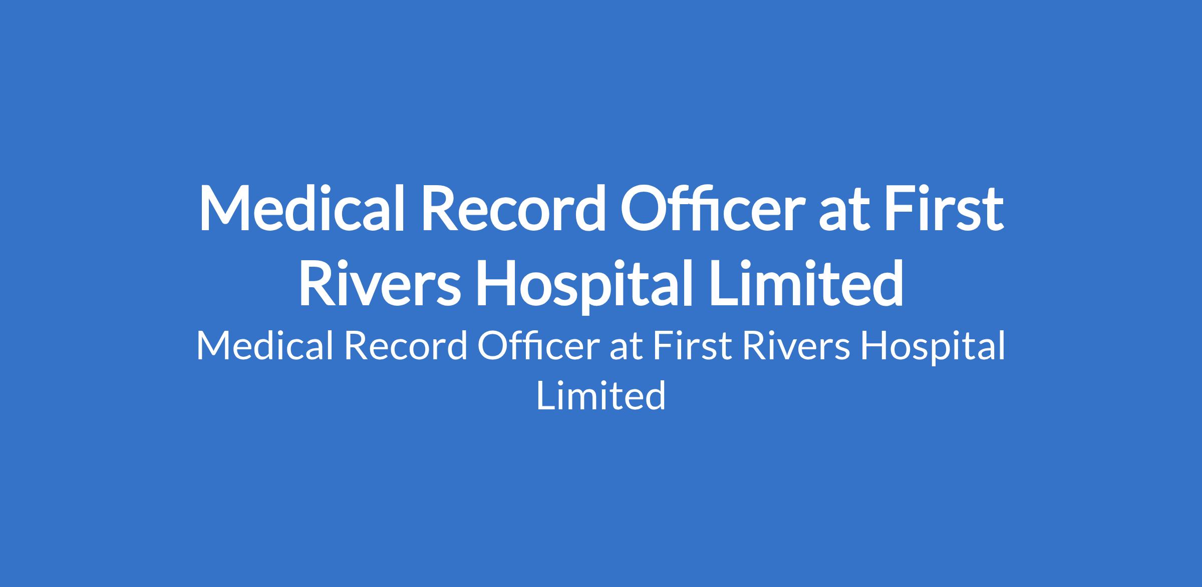 First Rivers Hospital Limited is recruiting to fill the position of: Medical Record Officer. The position is located in Port Harcourt, Rivers State. Interested candidates must possess a good National Diploma in Medical Records Technician with at least 3 years post-qualification cognate experience and should be fully registered with the Institute of Medical Record Technicians of Nigeria OR an HND / B.Sc qualification in Medical Records from a recognized institution with 1 - 5 years of experience.