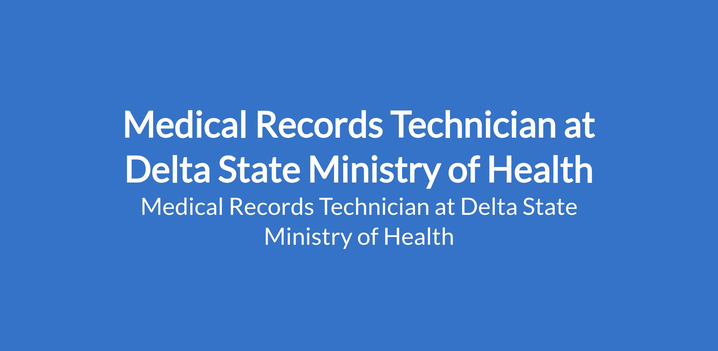 Delta State Ministry of Health is inviting applications from suitable candidates to fill the position of: Medical Records Technician. Interested candidates should possess relevant qualifications with a minimum of 3 years training programme from a school of Health Technology and obtained the registration of the Institute of Medical Lab.
