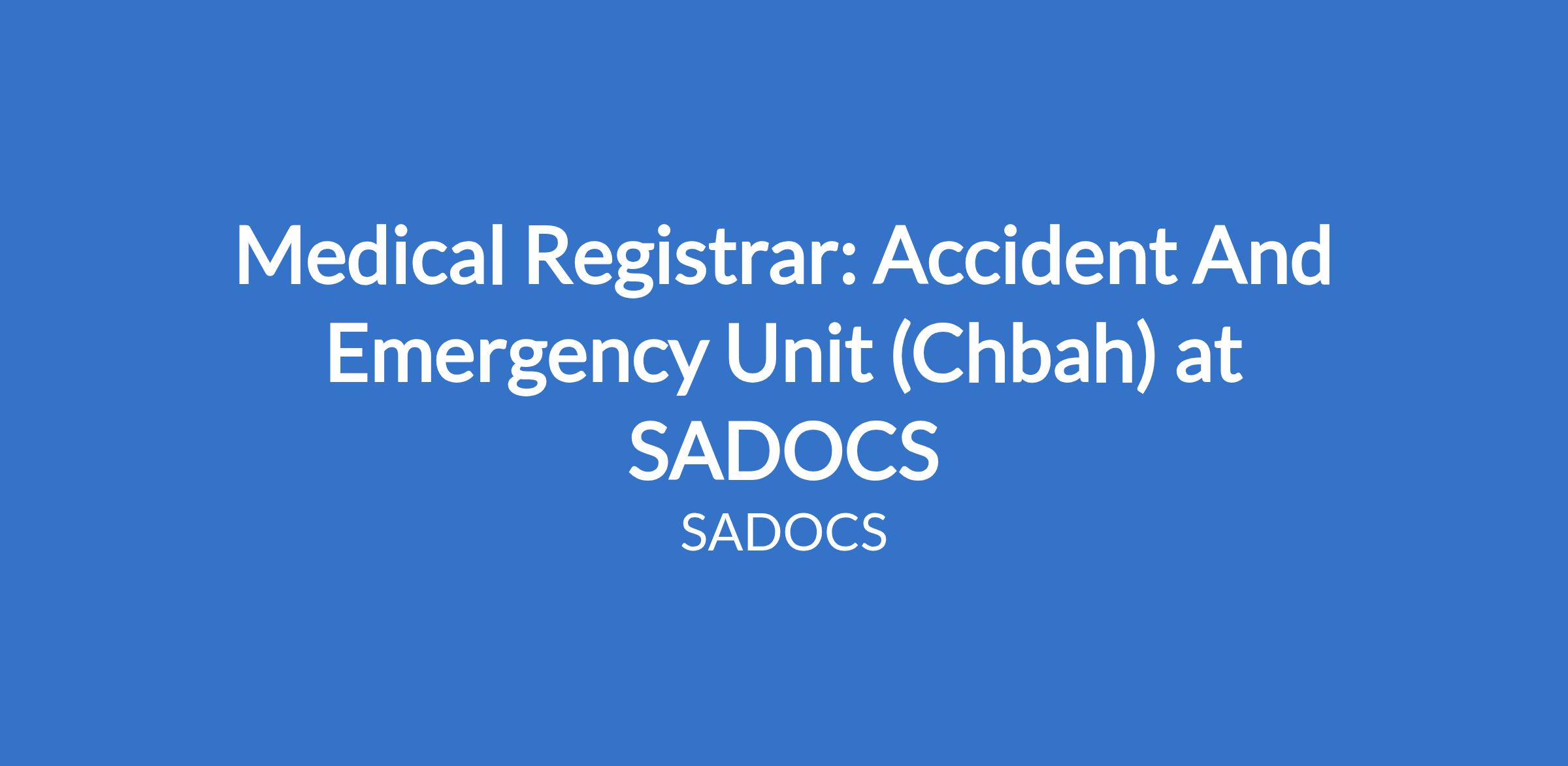 Medical Registrar: Accident And Emergency Unit (Chbah) at SADOCS
