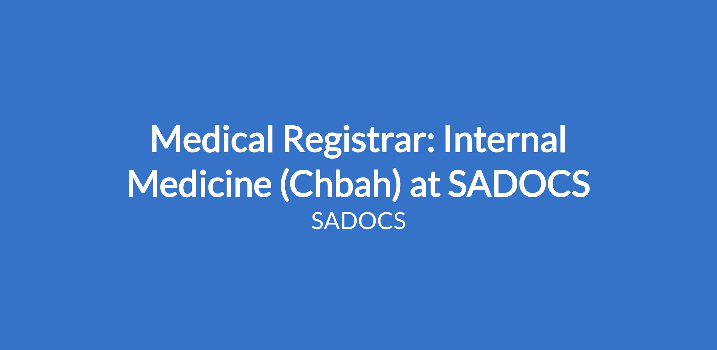 Medical Registrar: Internal Medicine (Chbah) at SADOCS