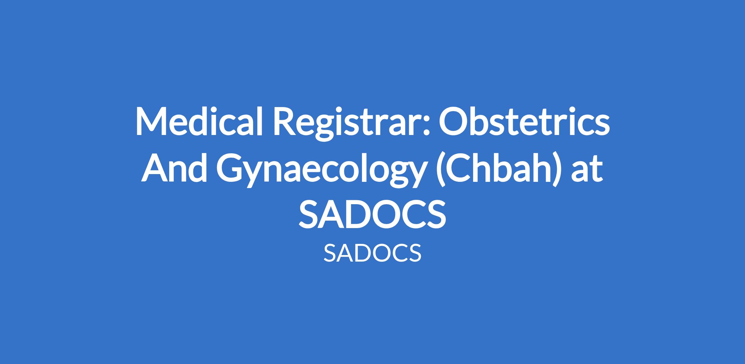 Medical Registrar: Obstetrics And Gynaecology (Chbah) at SADOCS
