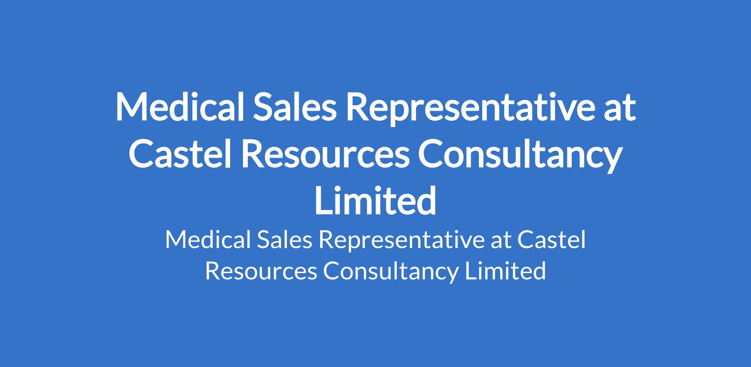 Castel Resources Consultancy Limited is recruiting to fill the position of: Medical Sales Representative. The position is located in Ikeja, Lagos State. Interested candidates should possess a B.Sc or HND in a Science-related field with 1-3 years experience.