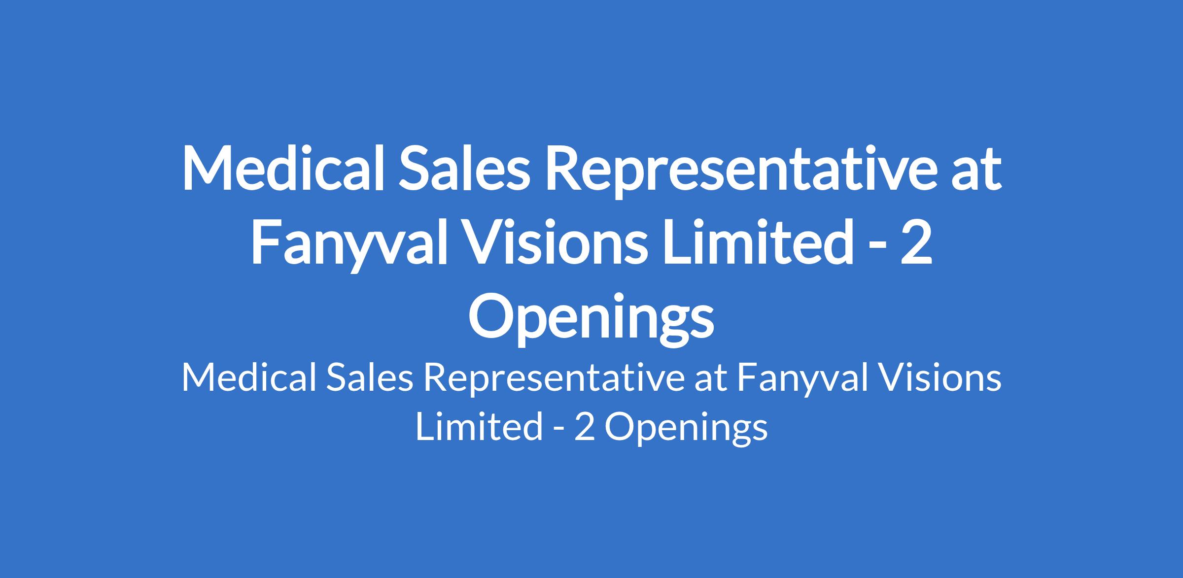 Fanyval Visions Limited is recruiting to fill the position of: Medical Sales Representative. The position is located in Imo & Kwara States. Interested candidates should possess a Bachelors Degree in Pharmacy, Pharmacology, Chemistry and Biological Sciences with 1 - 3 years of work experience as a Medical Sales Representative or similar role.