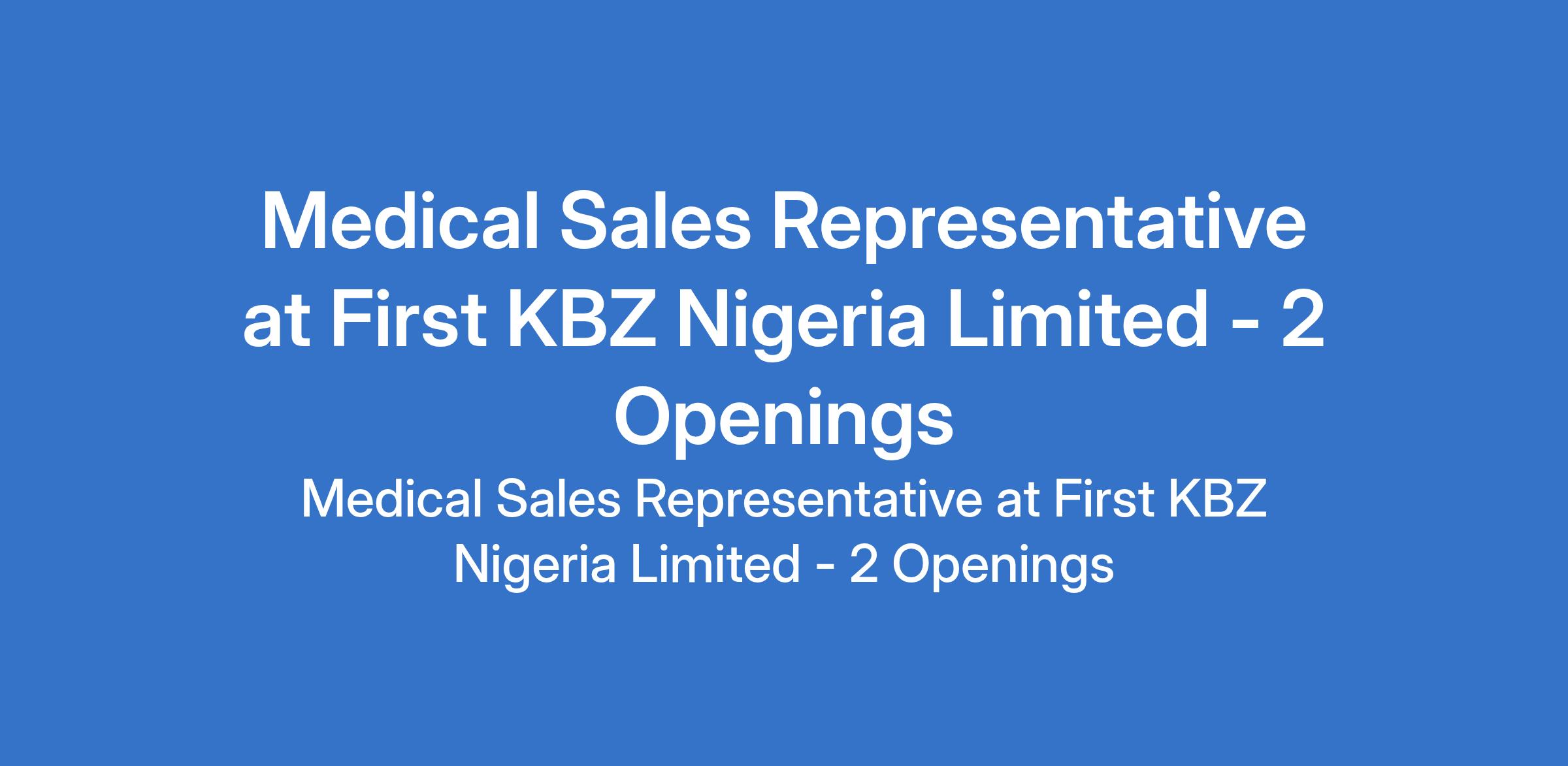 First KBZ Nigeria Limited is recruiting to fill the position of: Medical Sales Representative. The position is located in Abuja (FCT), Lagos,& Kano State. Interested candidates should possess a Degree or relevant qualification in Biological or Life Sciences, Medical Laboratory Science, or a related discipline is an added advantage with 2 3 years relevant experience in medical or pharmaceutical sales.