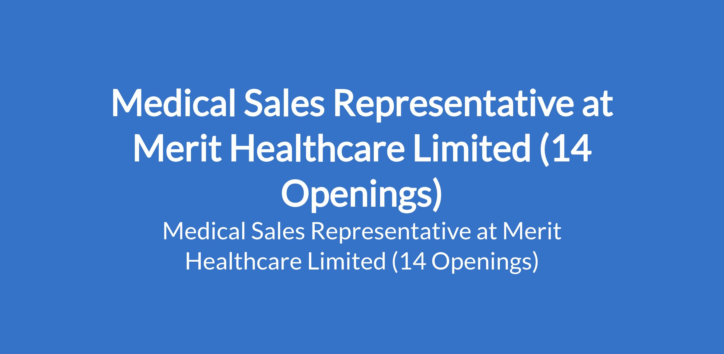 Merit Healthcare Limited is recruiting to fill the position of: Medical Sales Representative. Badagry and Ikorodu - Lagos, Sango / Abeokuta - Ogun, Port Harcourt - Rivers, Abia, Awka - Anambra, Enugu, Calabar - Cross Rivers, Lafia - Nasarawa, Benue, Bauchi, Yobe, Ekiti, Asaba - Delta, and Benin - Edo States. Interested candidates should possess minimum of a B.Sc. / HND qualification in a science-related field (e.g., Microbiology, Biochemistry, Pharmacology, Pharmacy, or related discipline), preferably with 1 - 3 years experience in pharmaceutical/medical sales.