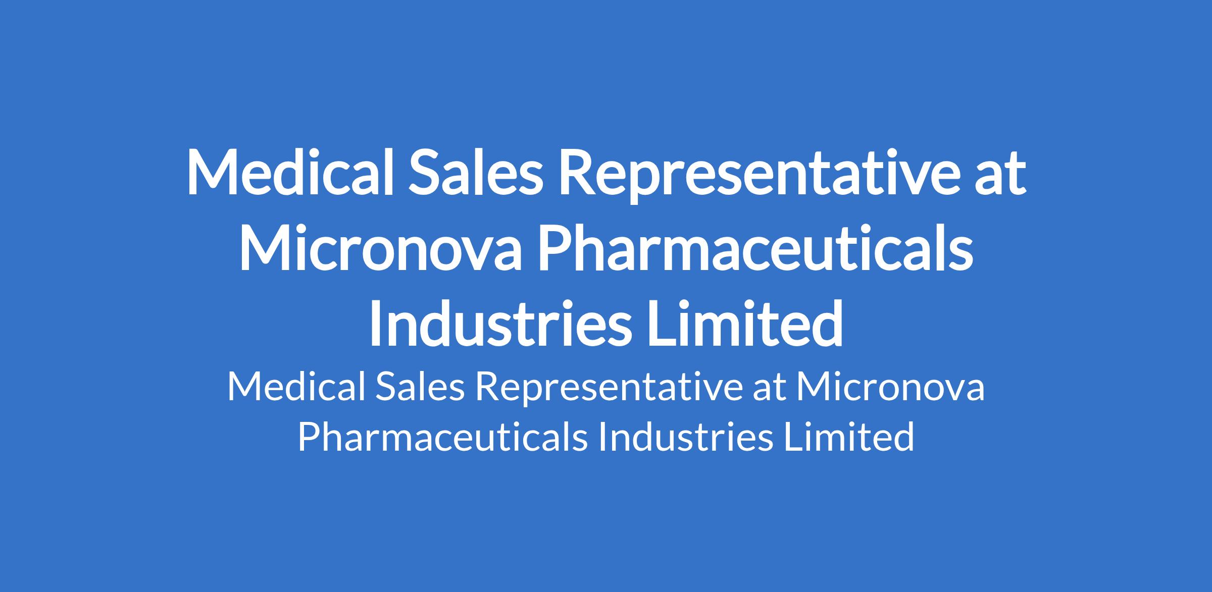 Micronova Pharmaceuticals Industries Limited is recruiting to fill the position of: Medical Sales Representative. The position is located in Oregun, Lagos State. Interested candidates should be Pharmacy Graduates with not more than 2 years experience in Sales or Pharma Marketing.