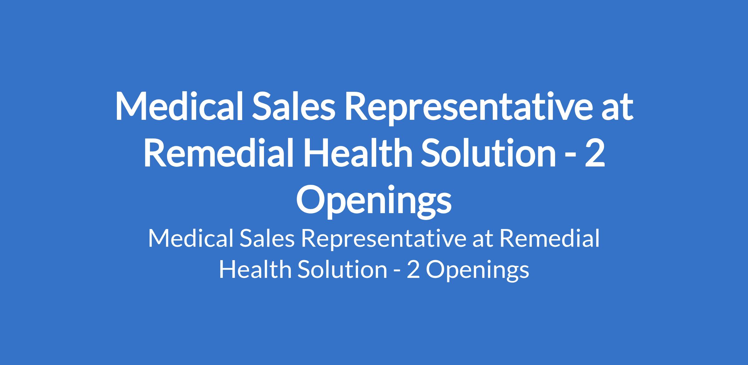 Remedial Health Solution is recruiting to fill the position of: Medical Sales Representative. The position is located in Port Hacourt - Rivers, & Bayelsa States. Interested candidates should possess a Bachelor Degree, HND; possess a valid drivers' license with 3 - 5 years experience as a Medical Sales Representative.