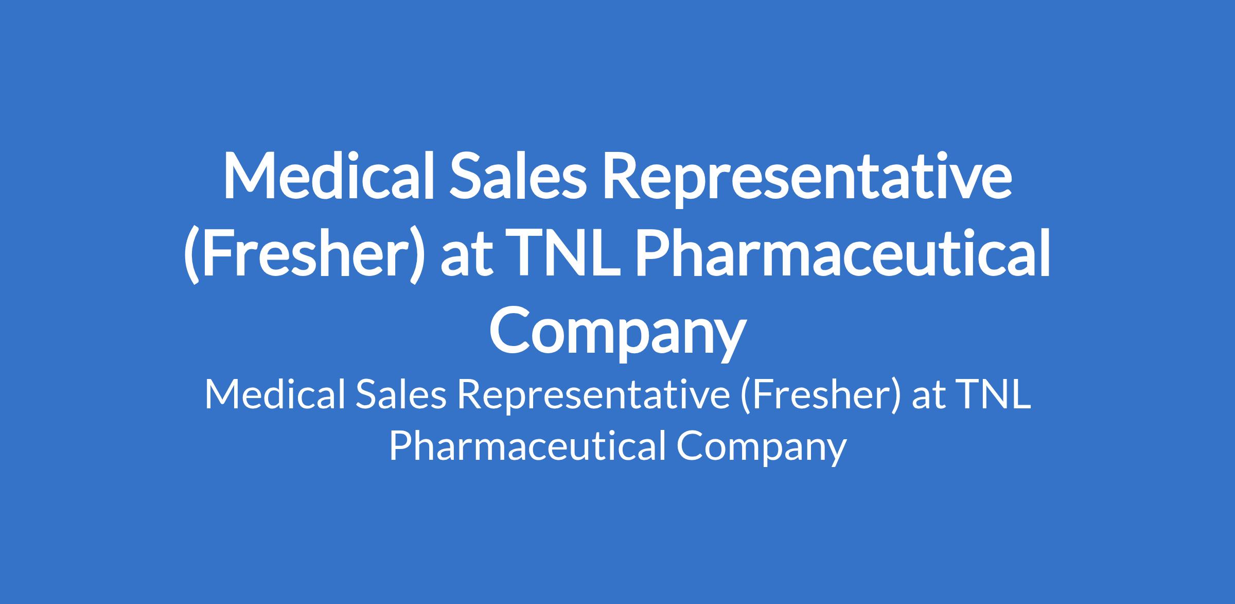 Medical Sales Representative (Fresher) at TNL Pharmaceutical Company